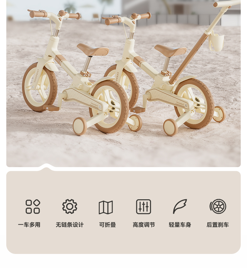 英氏儿童平衡车滑行学步车2-6岁宝宝自行车多功能折叠自行车