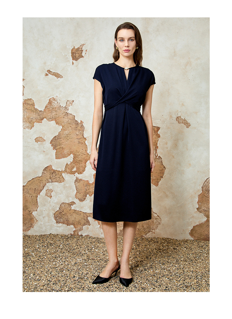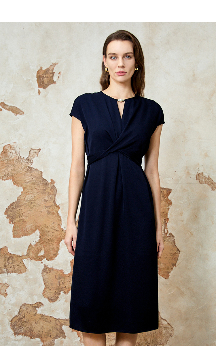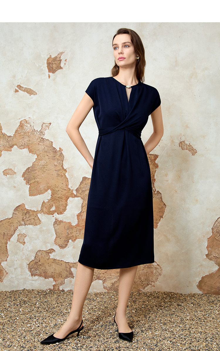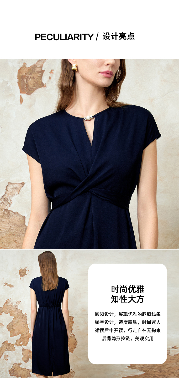 EITIE爱特爱法式优雅气质百搭通勤收腰连衣裙春夏新款8107836