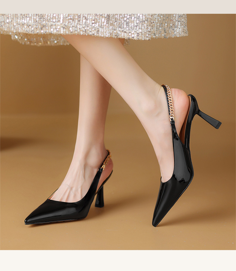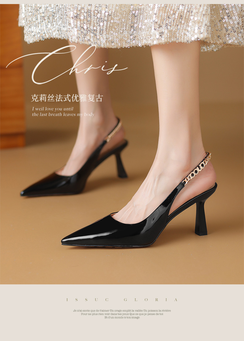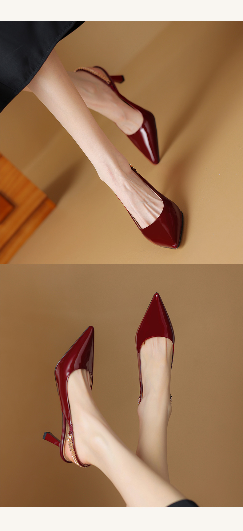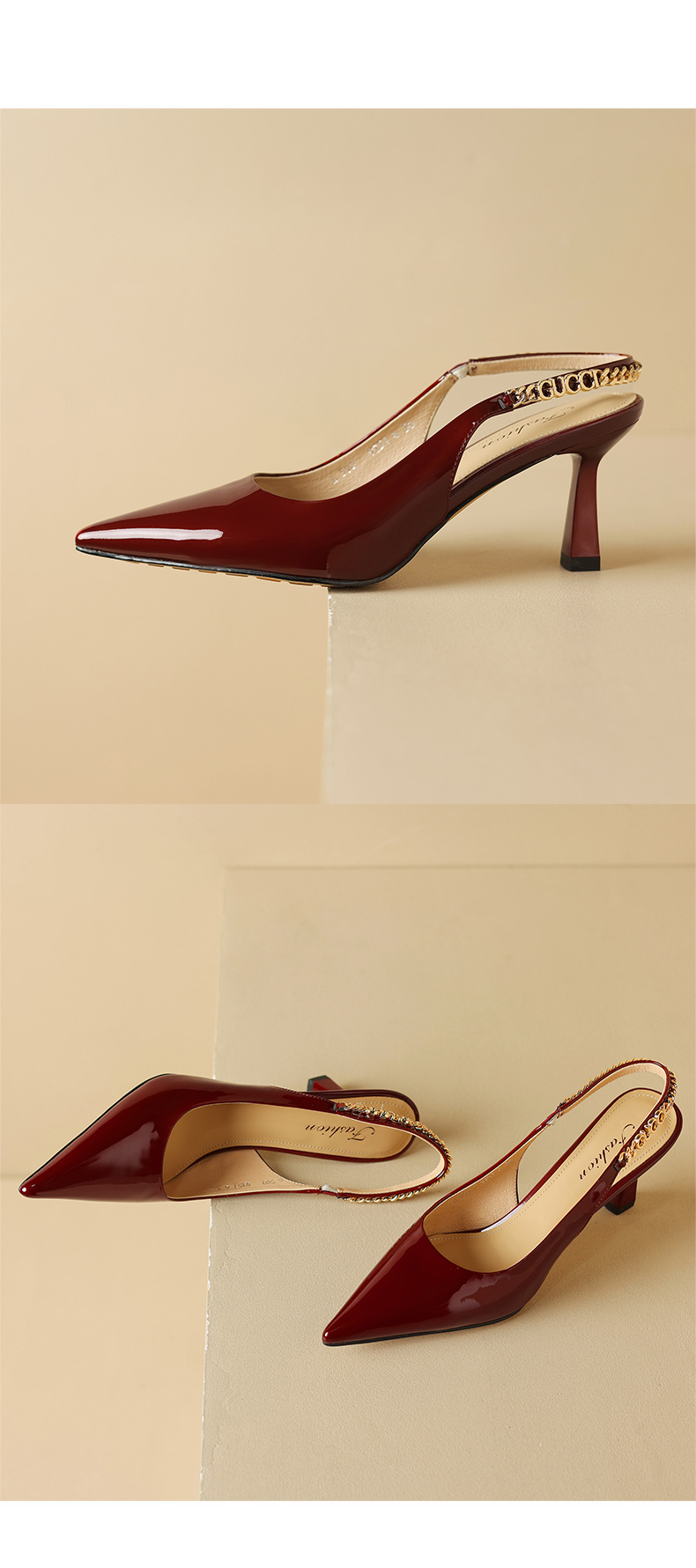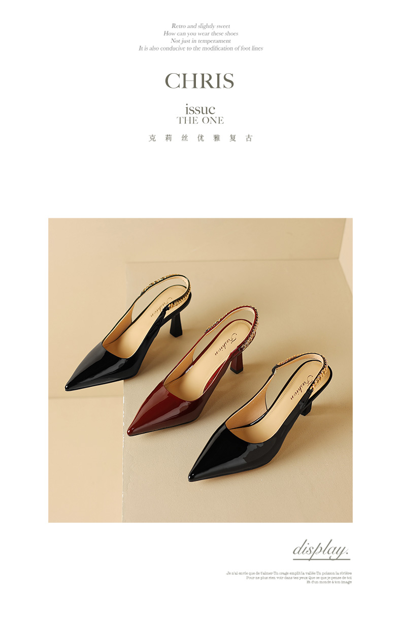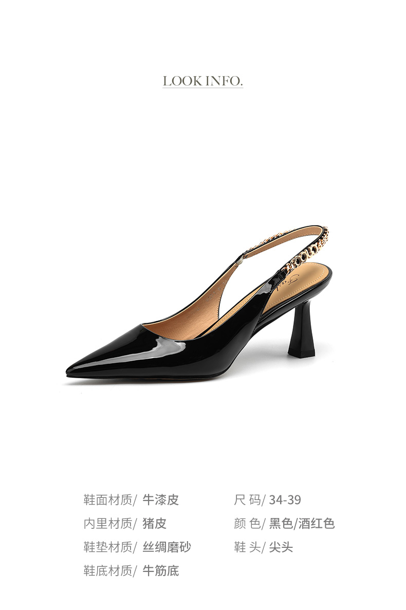 【预售5天】性感优雅,珠光漆皮尖头小跟后空鞋YS&9351