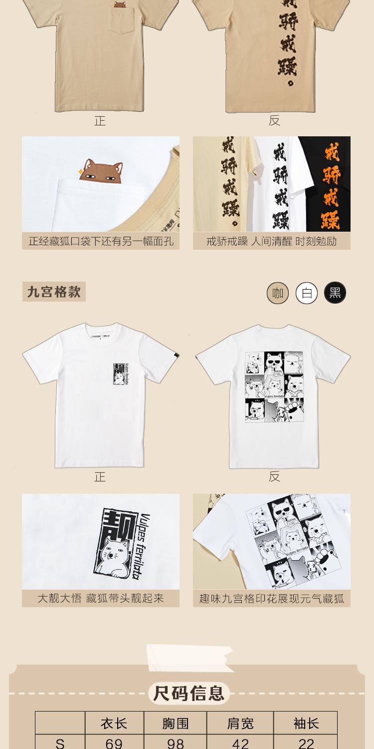 博物文创 原创藏狐T恤 纯棉 男女生情侣圆领 修身简约休闲