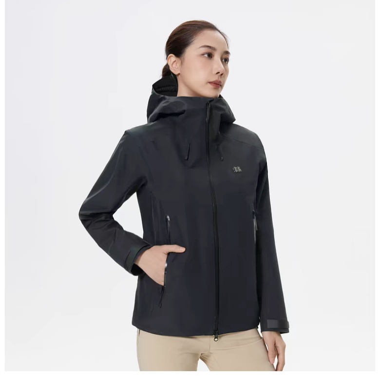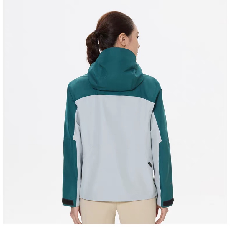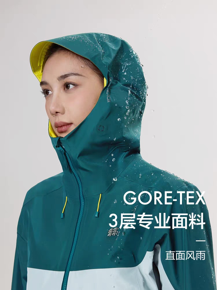 常规版型设计,结合腋下三角片式立体裁剪,满足高海拔登山、徒步时大幅摆臂的活动性需求分割线处采用压胶工艺,结合帽檐、下摆、口袋等重点部位热压加固处理,提供持久防护性能。