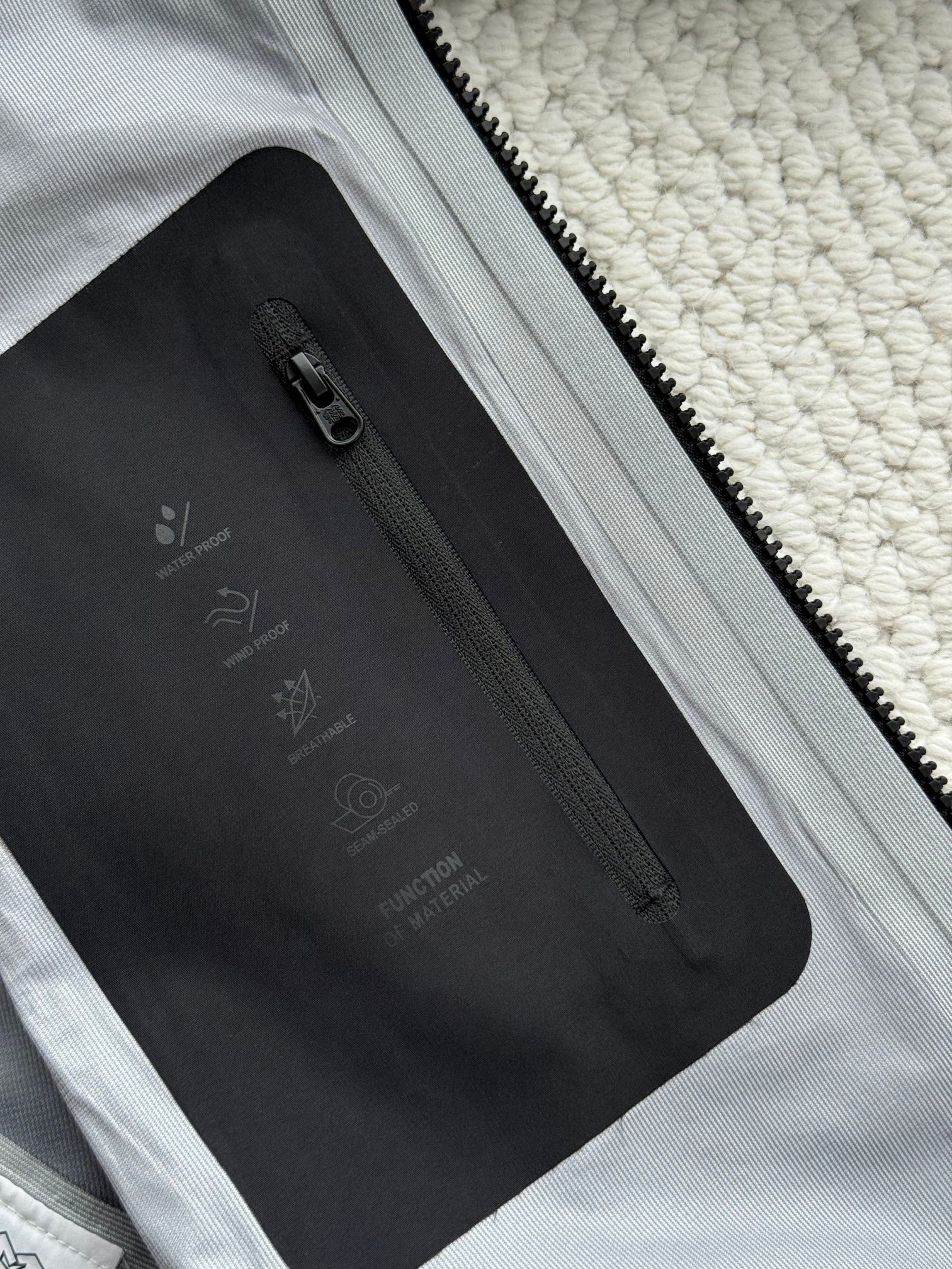大身采用轻盈的40D GORE-TEX C-KNIT面料,具有防水、防风、透湿及耐磨的功能。