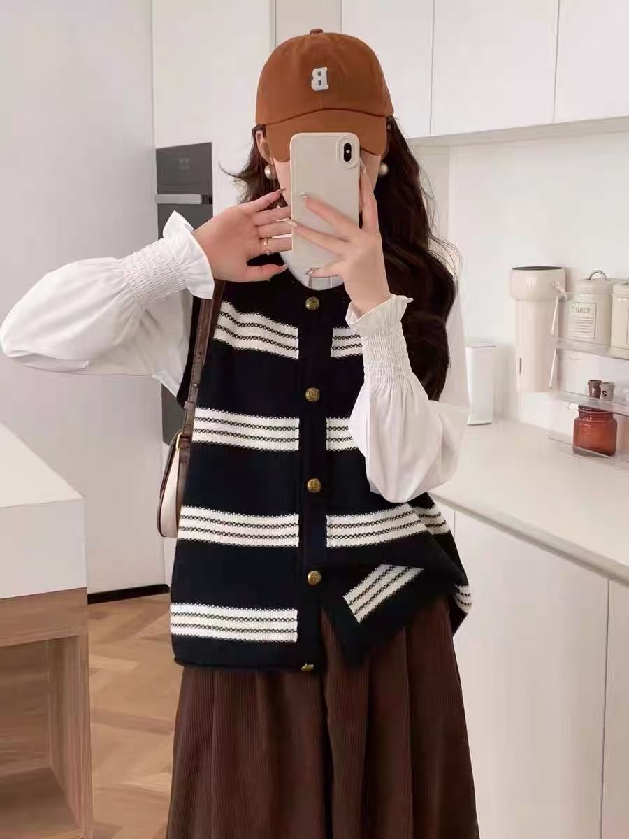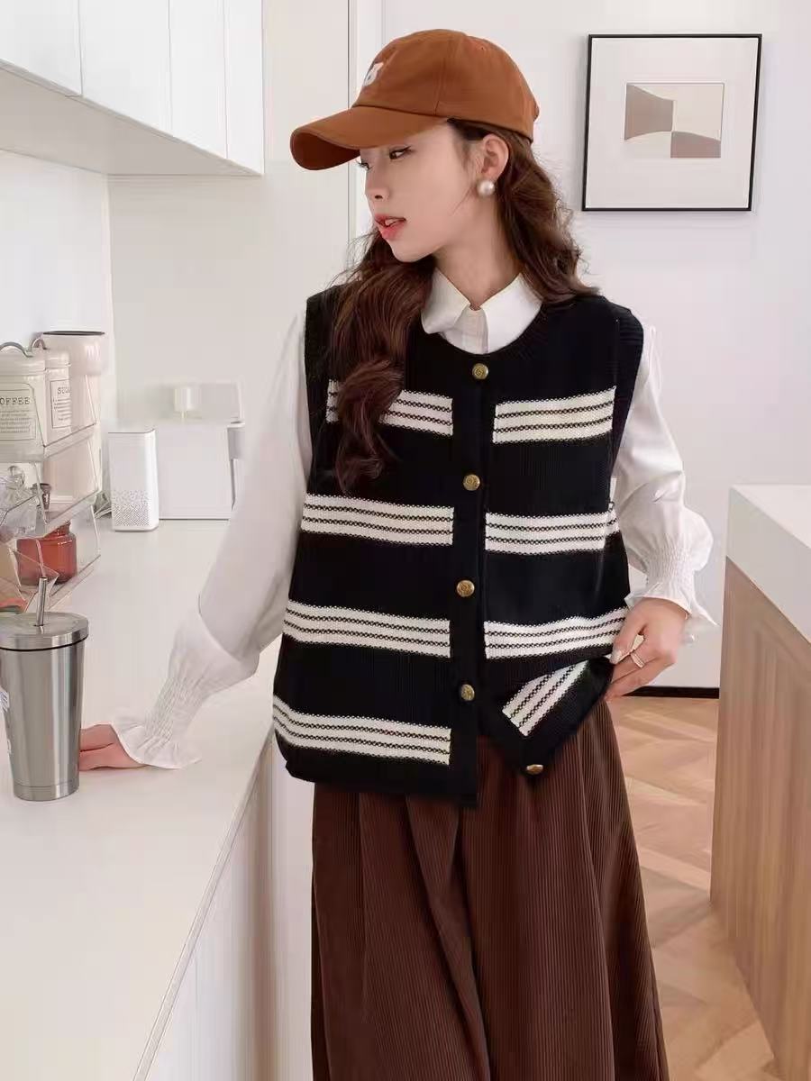 【孤品捡漏】G140黑白金扣条纹马甲-喜出
