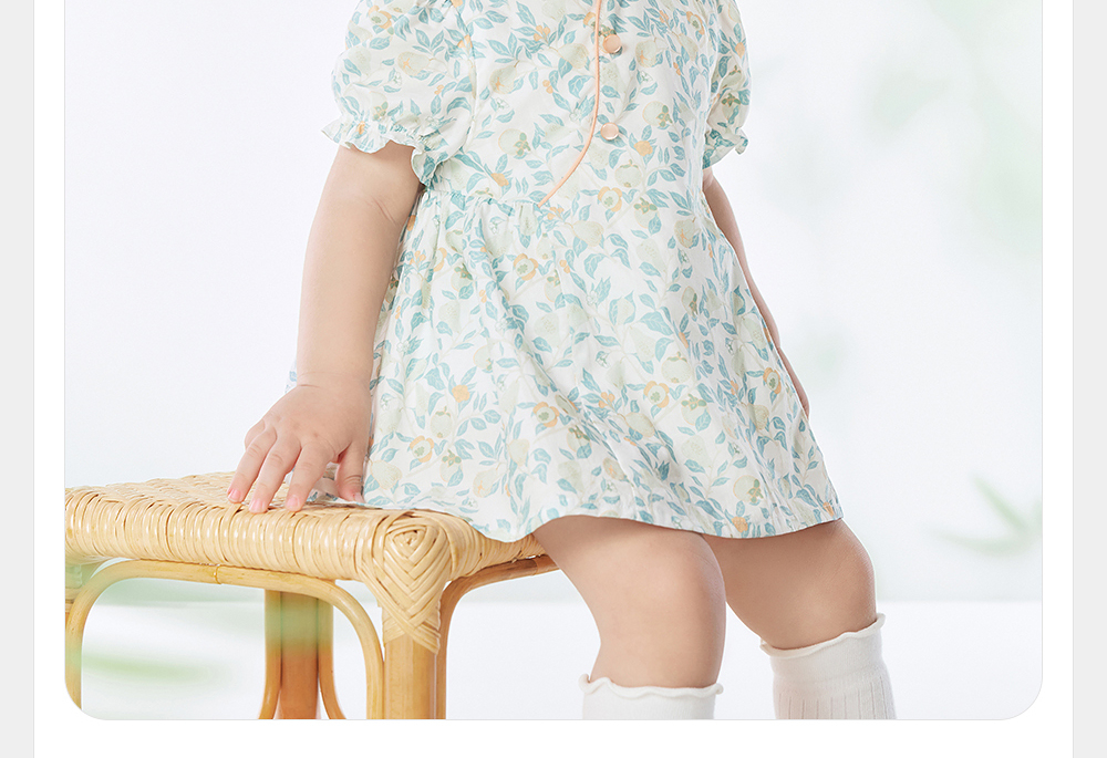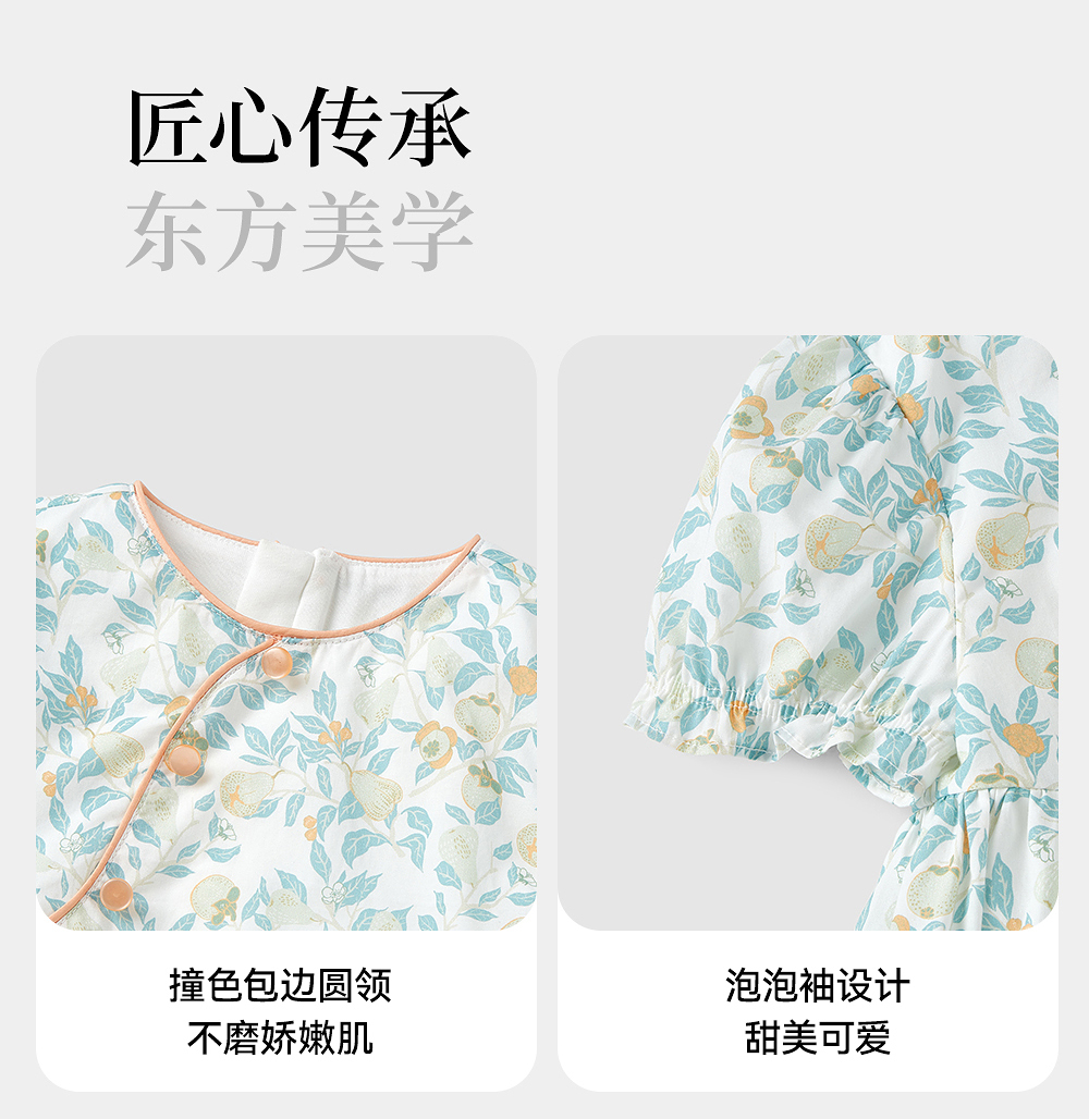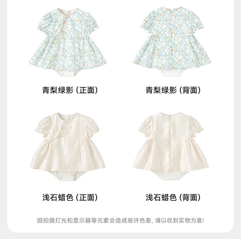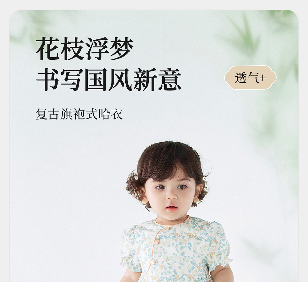 英氏婴儿衣服夏季透气轻薄女童国风连体衣新中式包屁衣2025新款