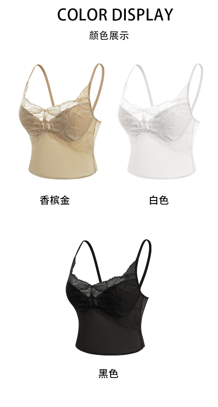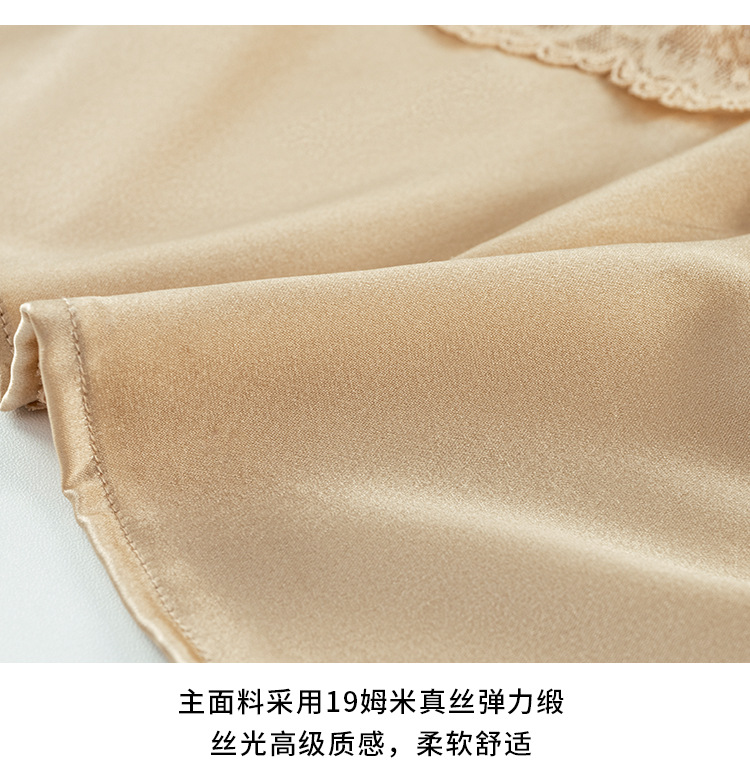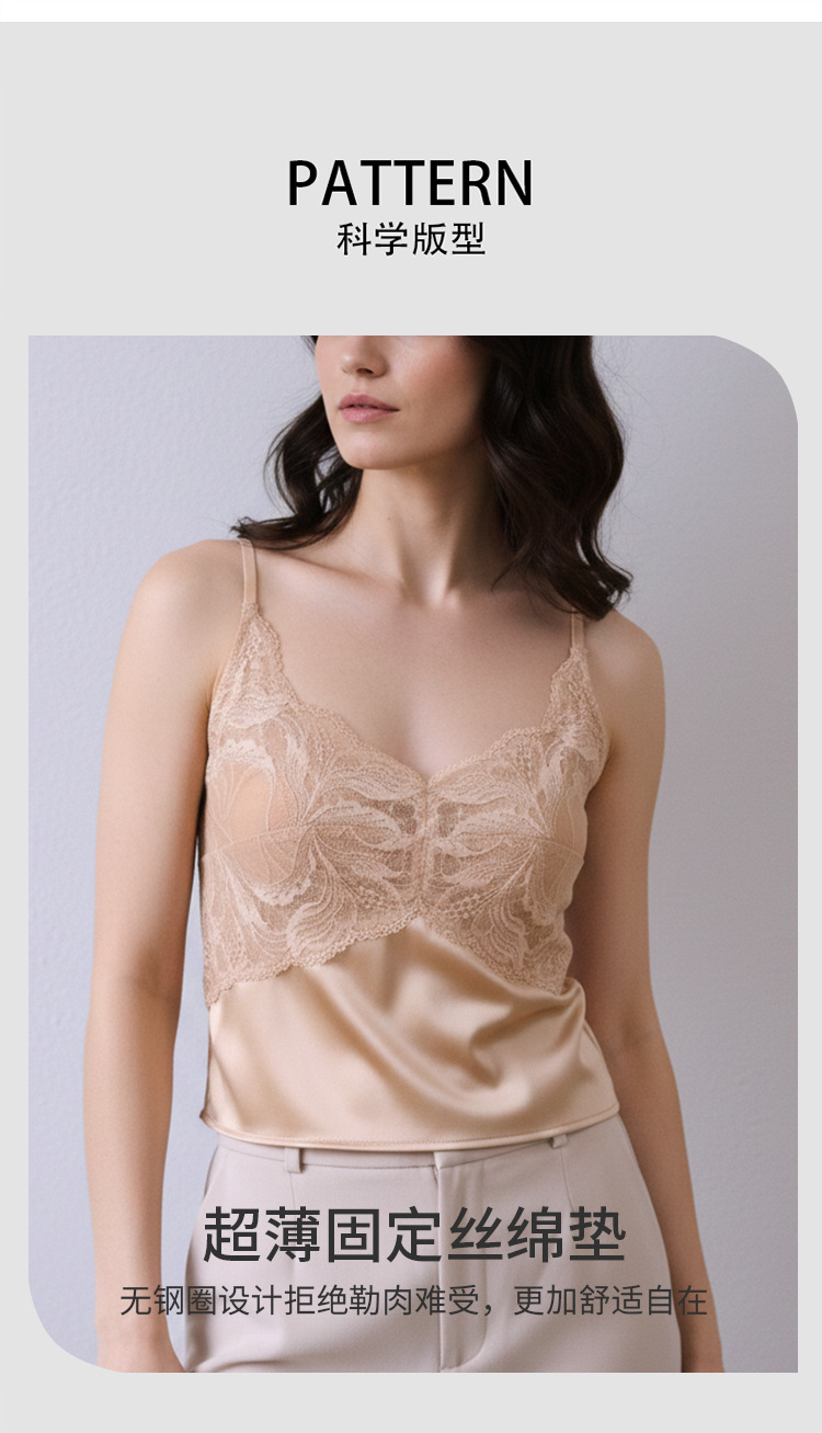 丁摩 真丝法式缎面超薄V领吊带 桑蚕丝蕾丝花边自带胸垫一字美背S298