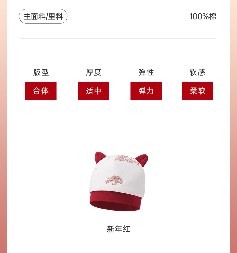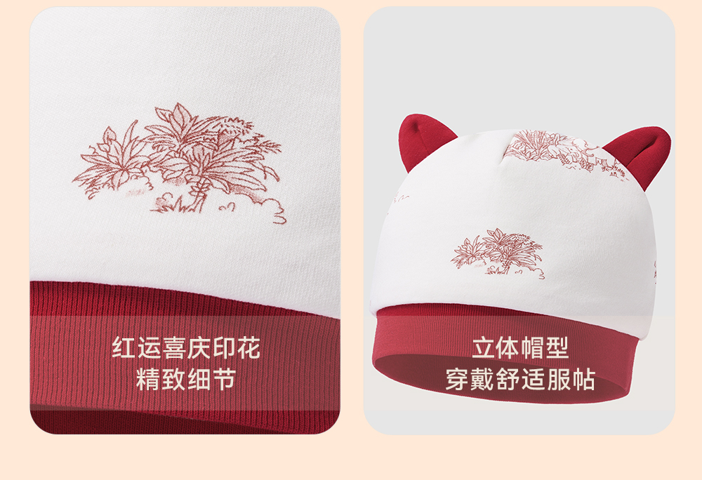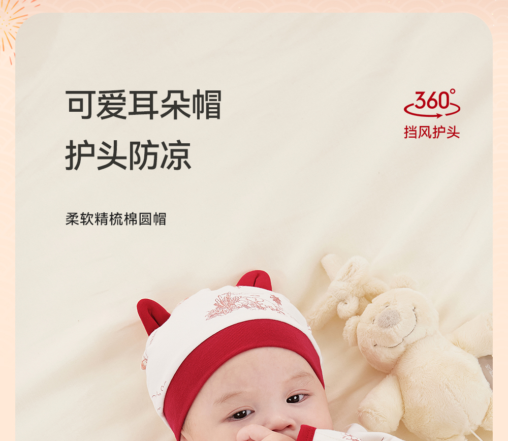【商场同款】英氏龙年拜年服新生儿纯棉圆帽宝宝胎帽新款Z