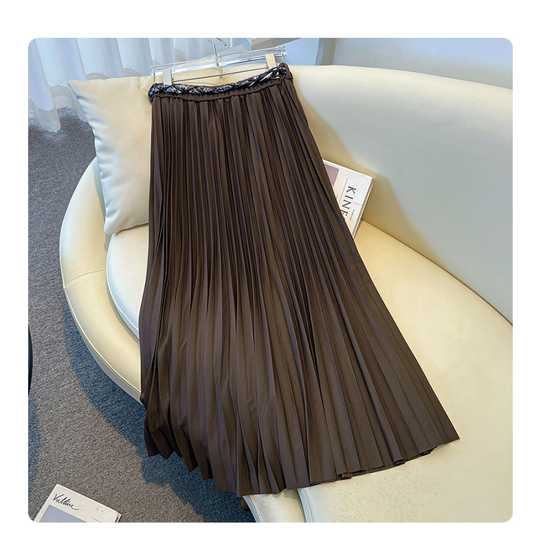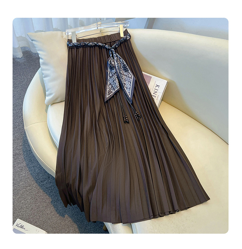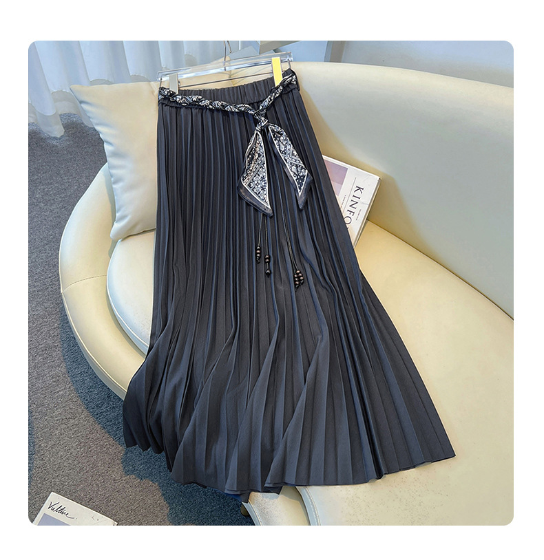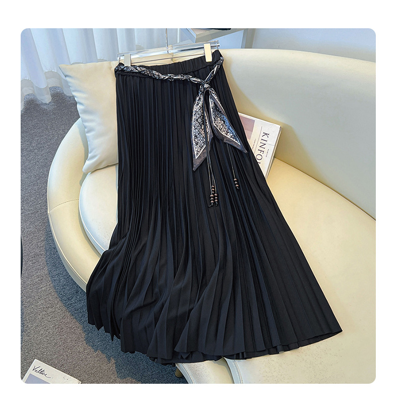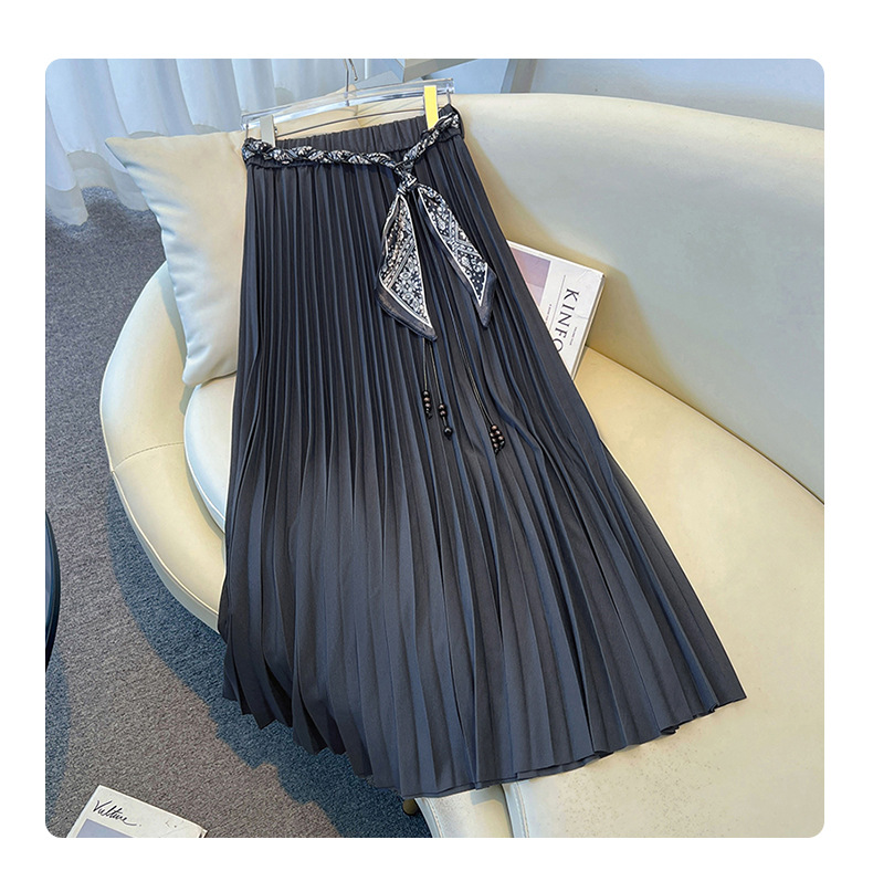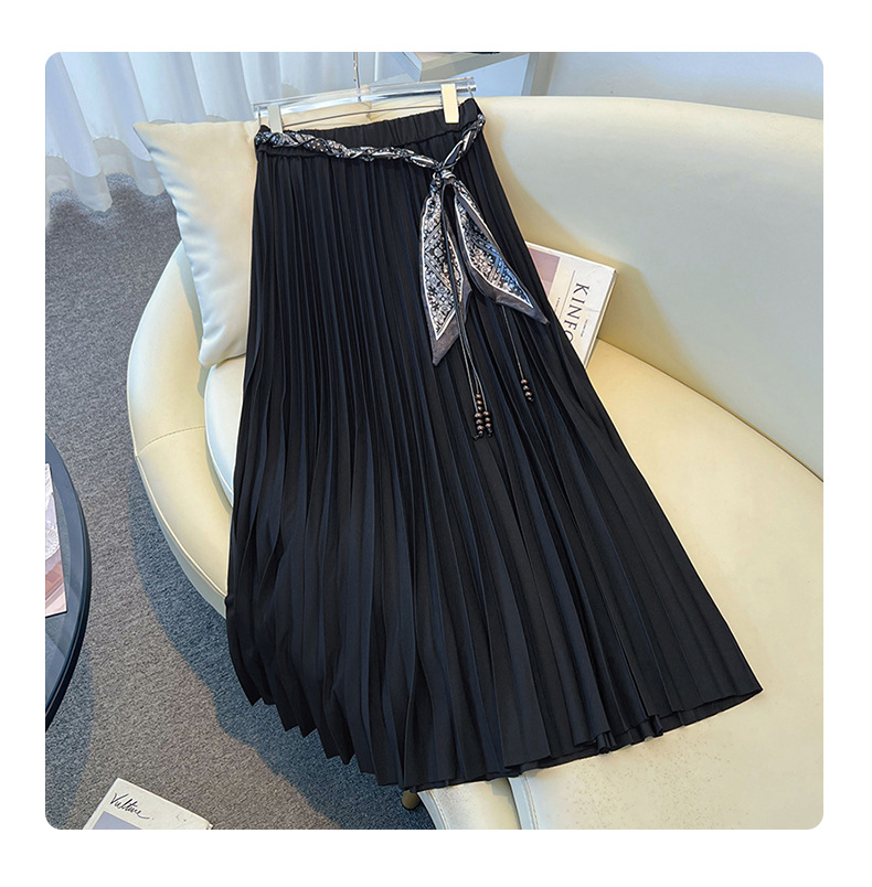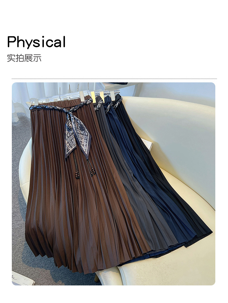 百媚生 【送腰带】半身裙女秋a字百褶裙垂感中长款伞裙0831-1