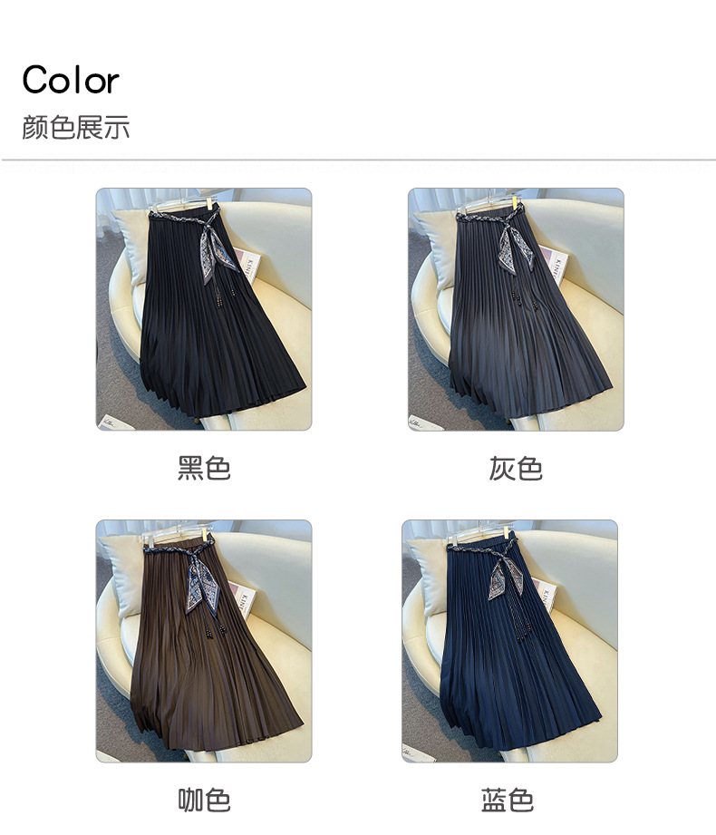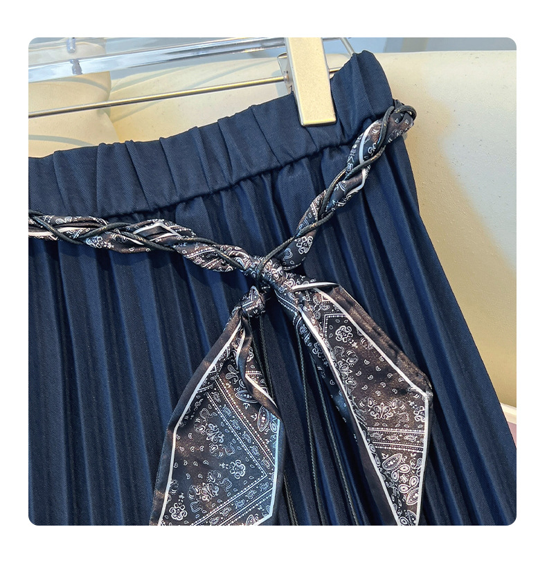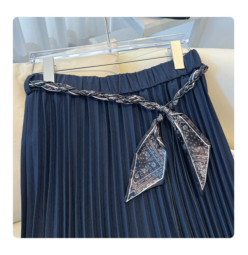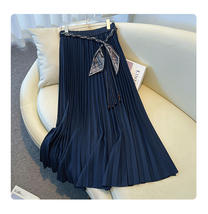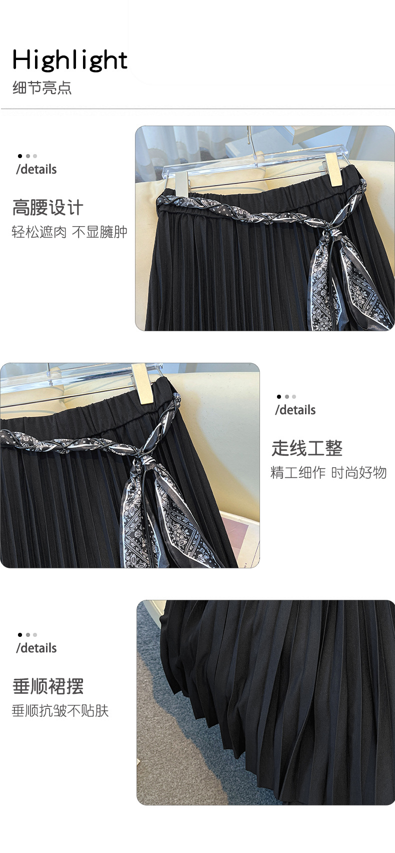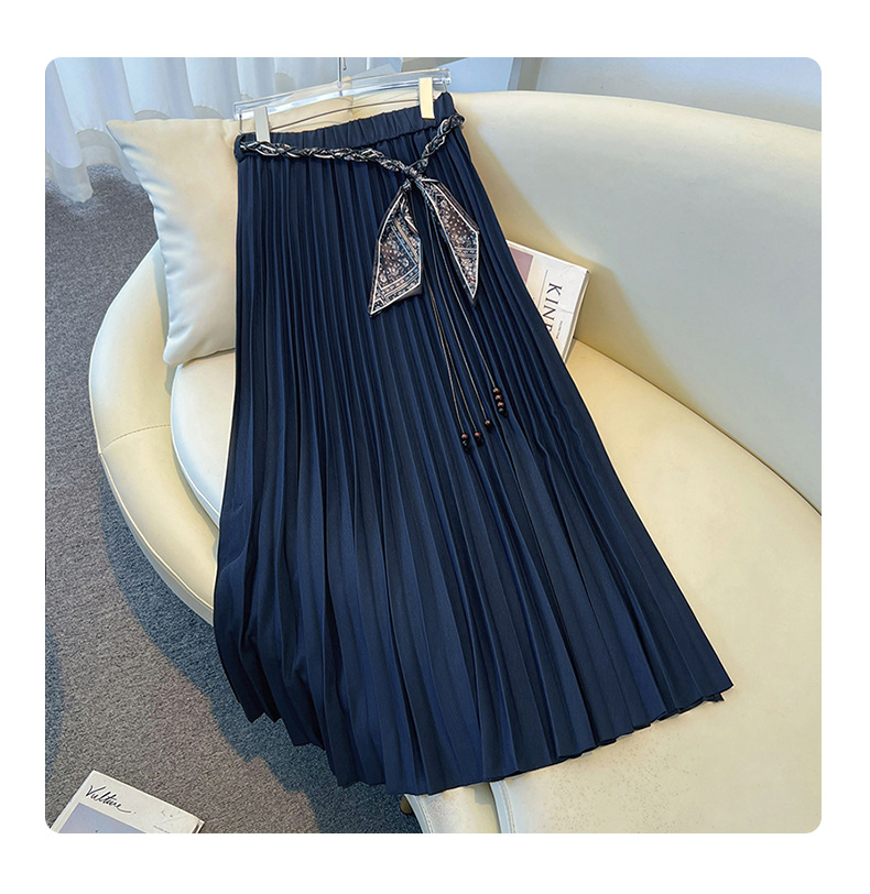 百媚生 【送腰带】半身裙女秋a字百褶裙垂感中长款伞裙0831-1