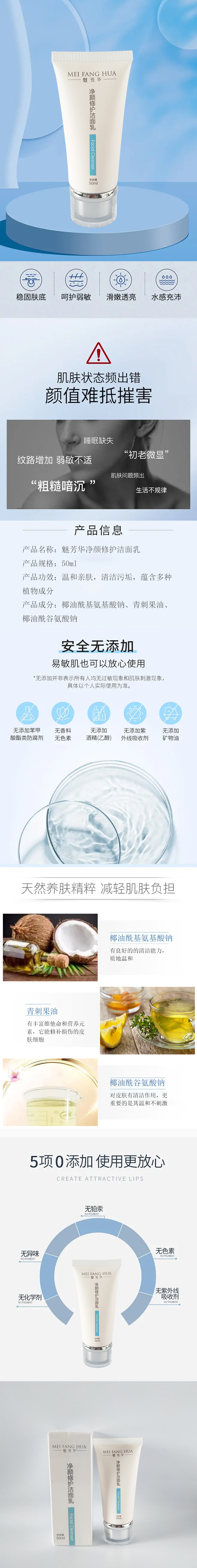 魅芳华净颜修护洁面乳50ml深层清洁清爽控油
