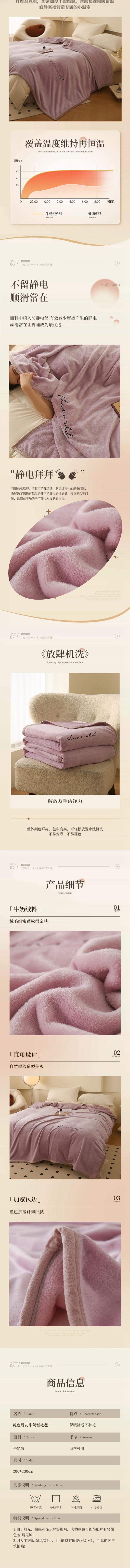 俞兆林 纯色绣花牛奶绒毛毯2米浅紫 YZL-24097