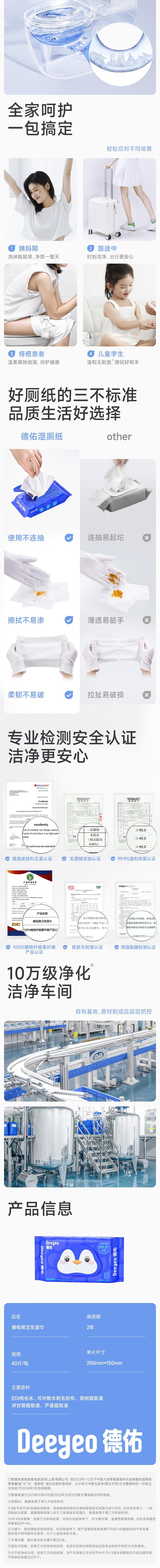 德佑Deeyeo 经典蓝湿厕纸40抽*3包 dyc40c3b