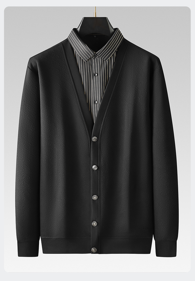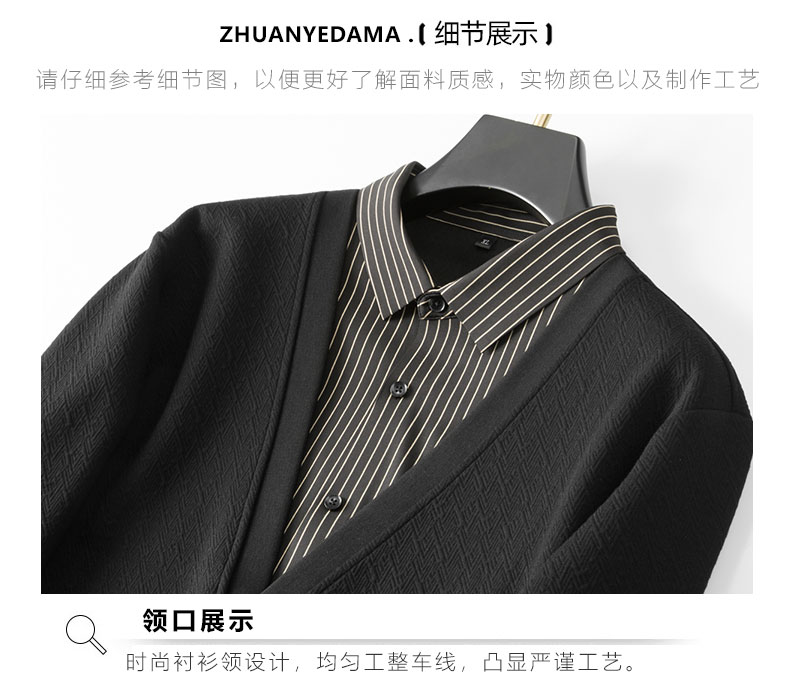 【假两件】【新款DDA】大依优型大码假两件长袖开衫T恤衬衫领加肥加大肥佬休闲商务宽松透气上衣打底
