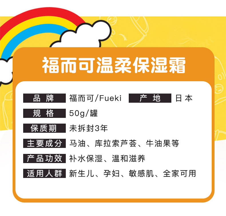 【甜蜜告白】福而可温柔保湿霜 140g/50g 天然成分 无色无味