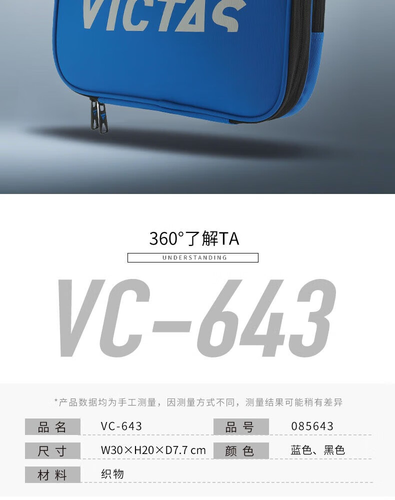 Victas维克塔斯乒乓球拍套双层方形球拍包便携收纳耐磨VC643蓝色黑色