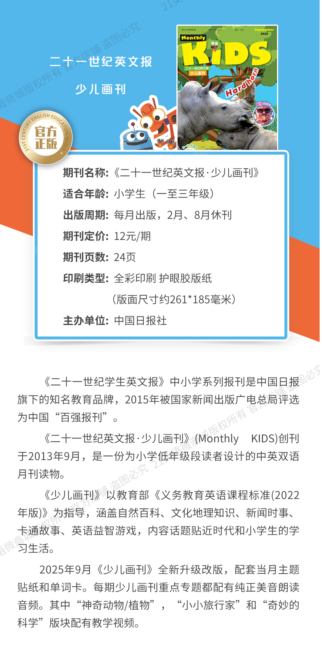 【全年月投】 | 《二十一世纪学生英文报》少儿画刊 1-3年级(2026年3月-2027年1月) 全年预订 寒暑假休刊