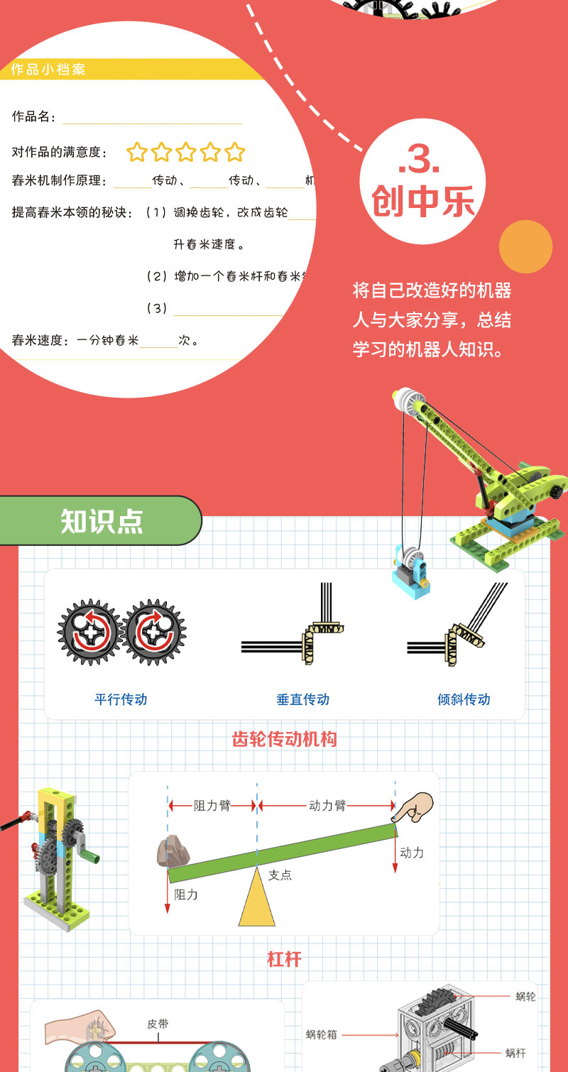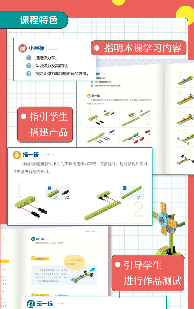 机器人系列丛书为小学生认识和学习机器人的STEAM科创课程,分创意机器人、动力机器人和编程机器人三个系列,本选题是该丛书其中一册,为创意搭建部分。本书主要通过机器人简单搭建,学习简单结构、的基本知识,培养学生的动手实践、空间认知、逻辑思维、想象力、解决问题、沟通协作、创造力、观察力和注意力等能力。 机器人系列课程以项目式学习进行设计,通过明确项目、积木搭建、创意拓展、作品分享、作品比赛等形式开展,体现了“玩中学,学中创”的课程设计理念,具有趣味性高、作品生动、互动性强等特点,适合不同年级的学生使用。