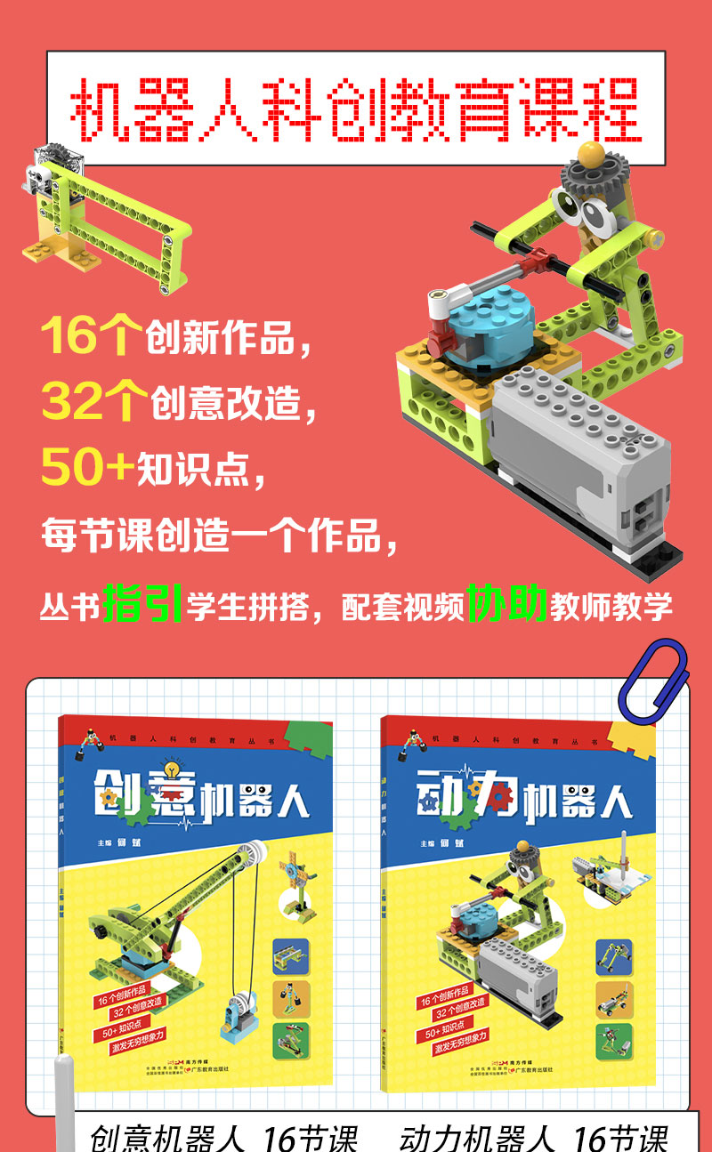 机器人科创教育丛书为小学生认识和学习机器人的STEAM科创教育丛书,主要通过趣味性高、互动性强的机器人作品搭建和图形化编程,帮助学生学习简单结构和编程基本知识、快速掌握机器人编程方法,可有效培养学生的动手实践、空间认知、逻辑思维、想象力、解决问题、沟通协作、创造力、观察力和注意力等能力。