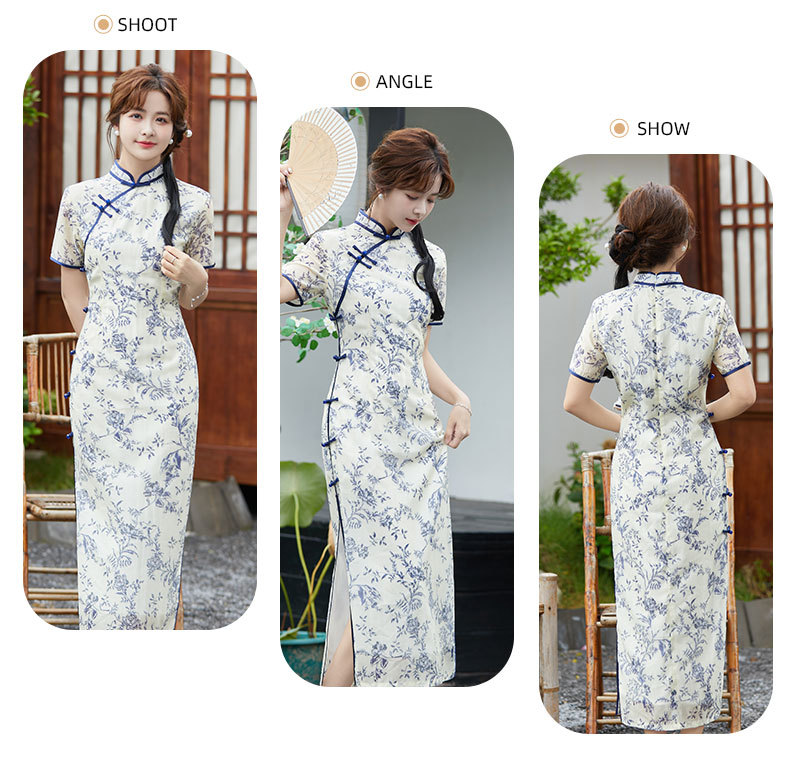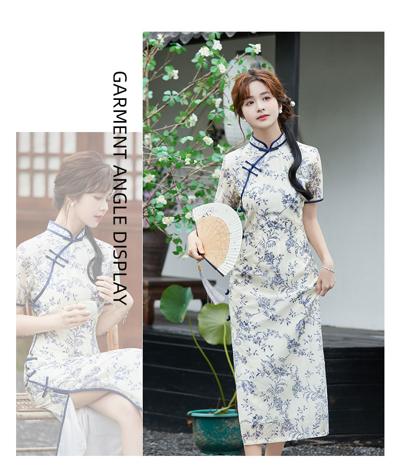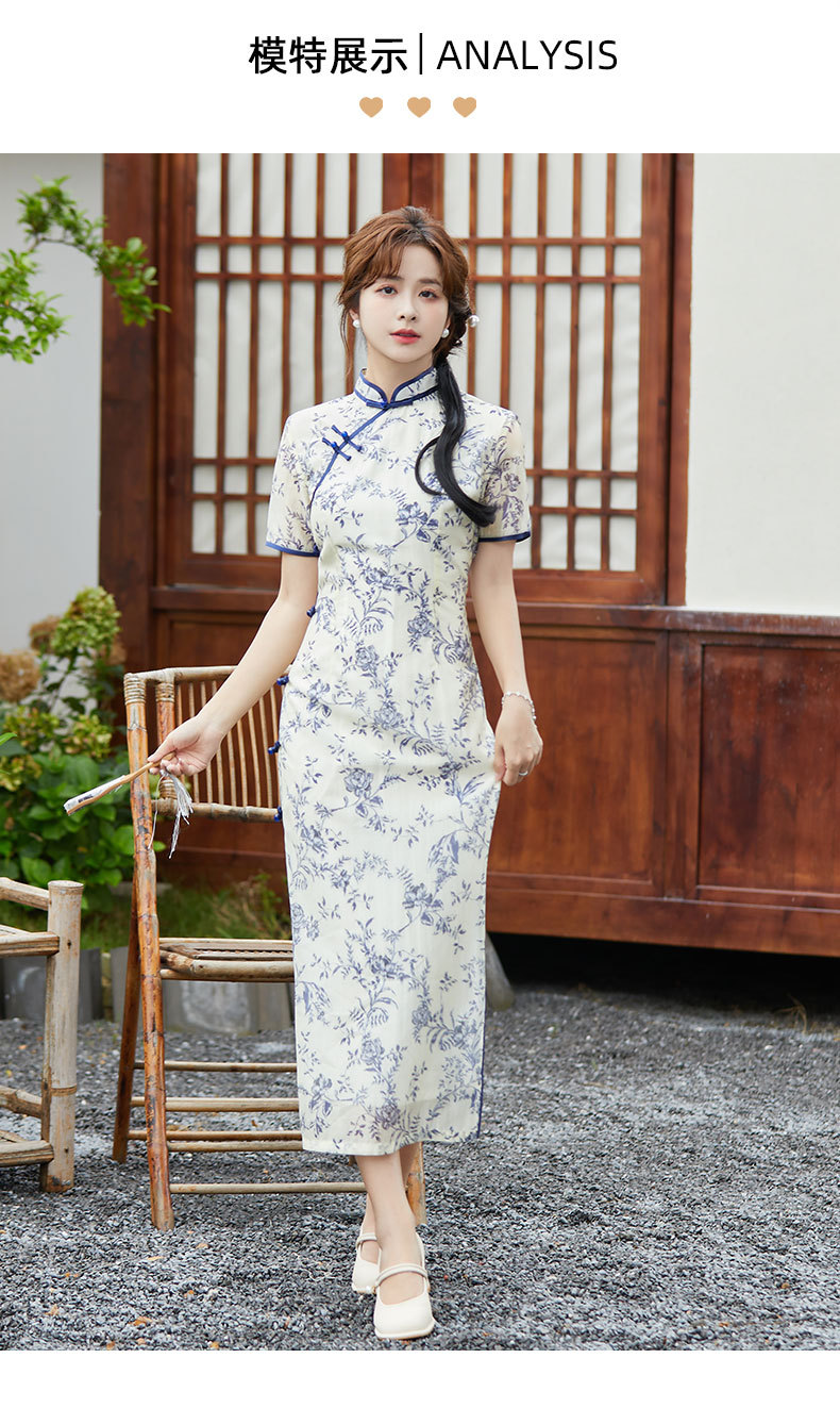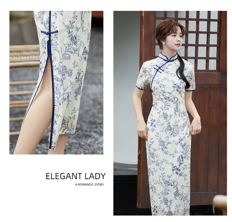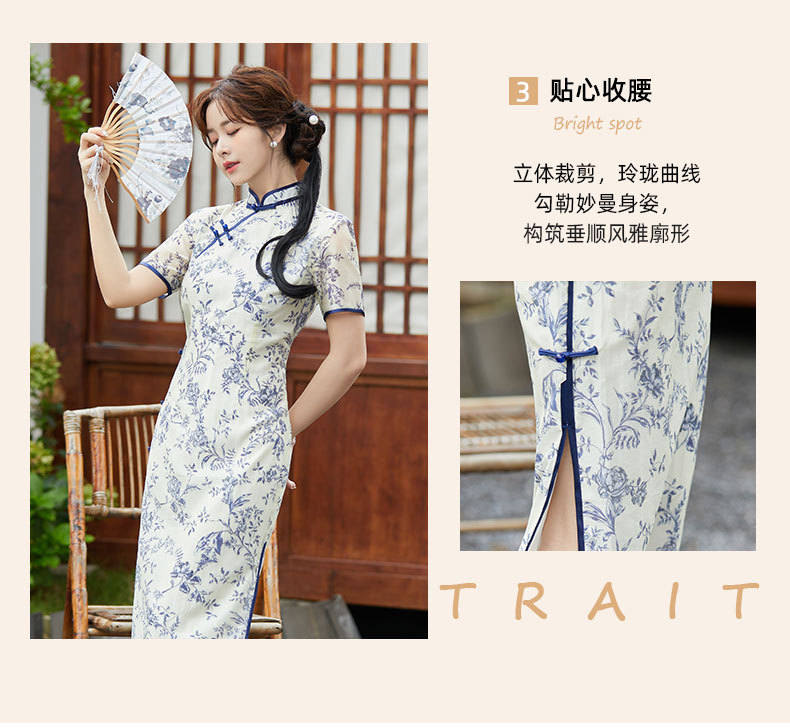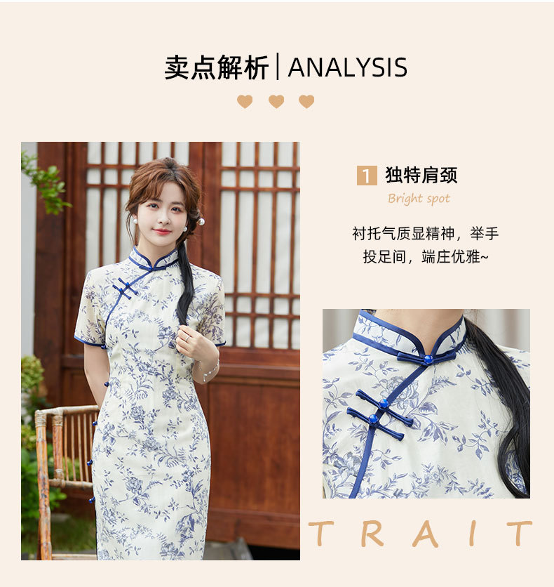 SYK-878-1旗袍年轻款三分袖女复古修身礼服2024年新款旗袍中式春秋款