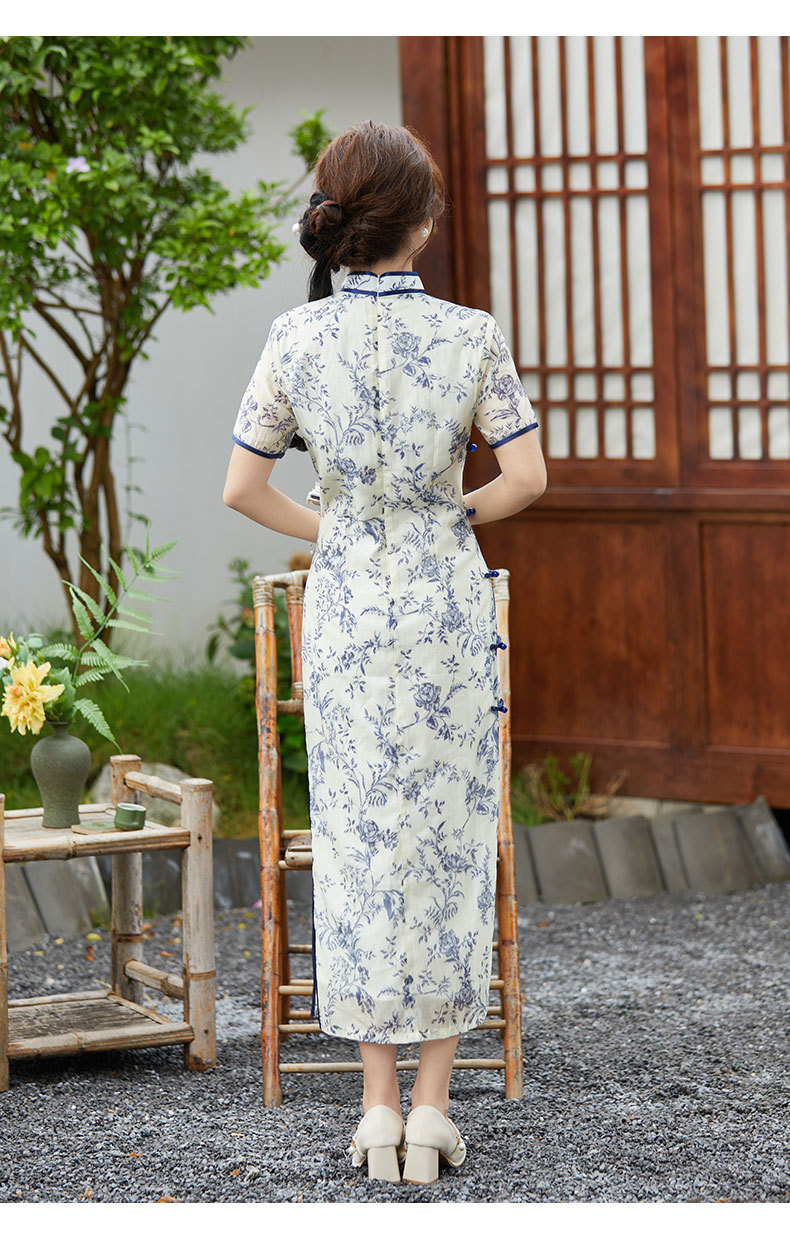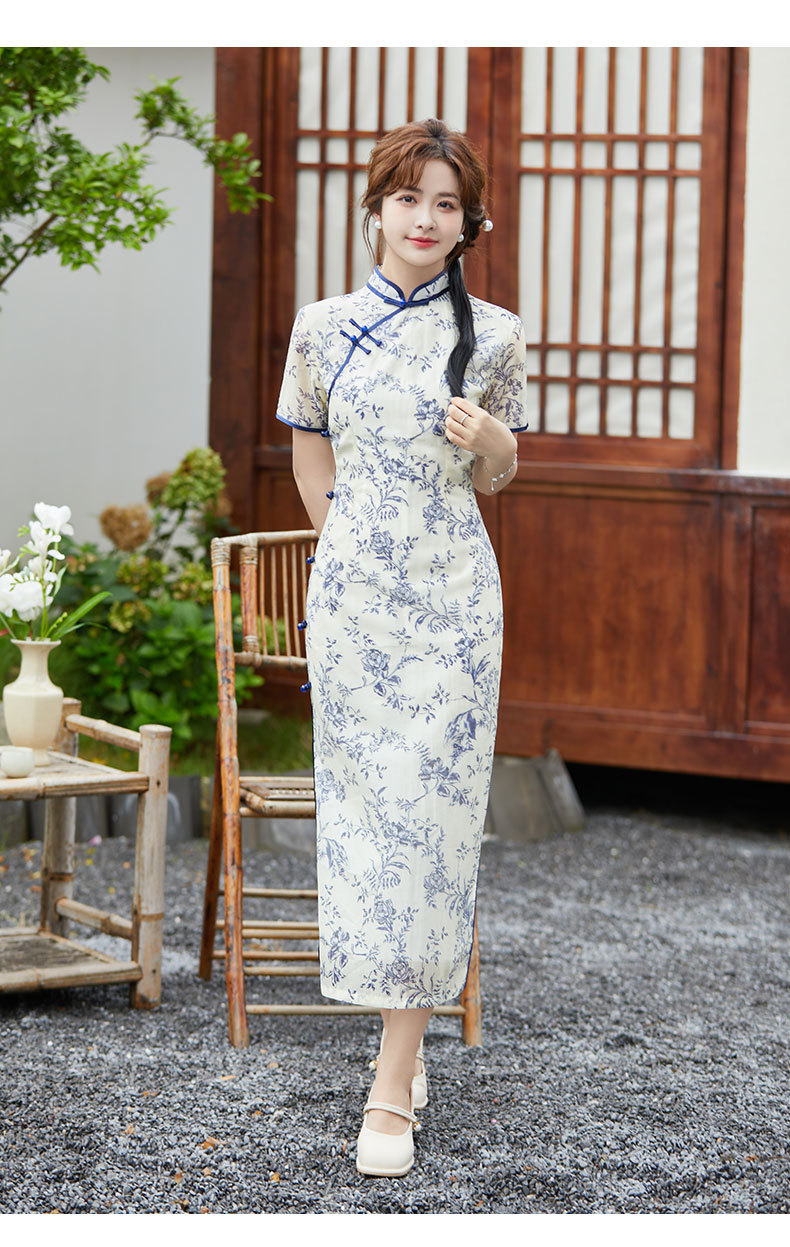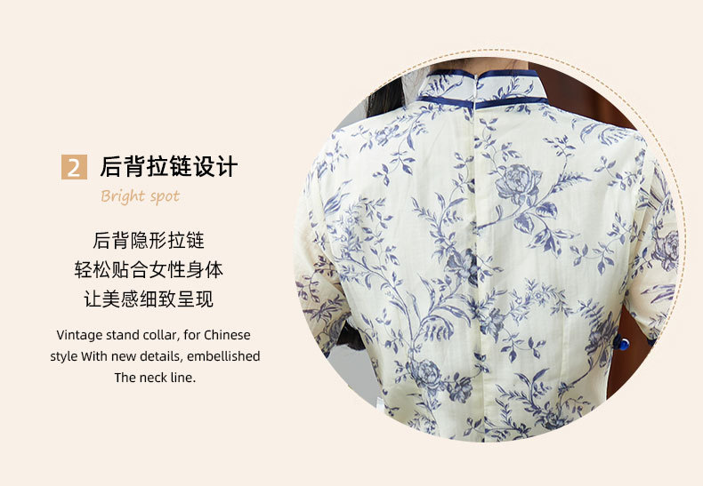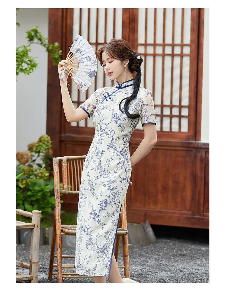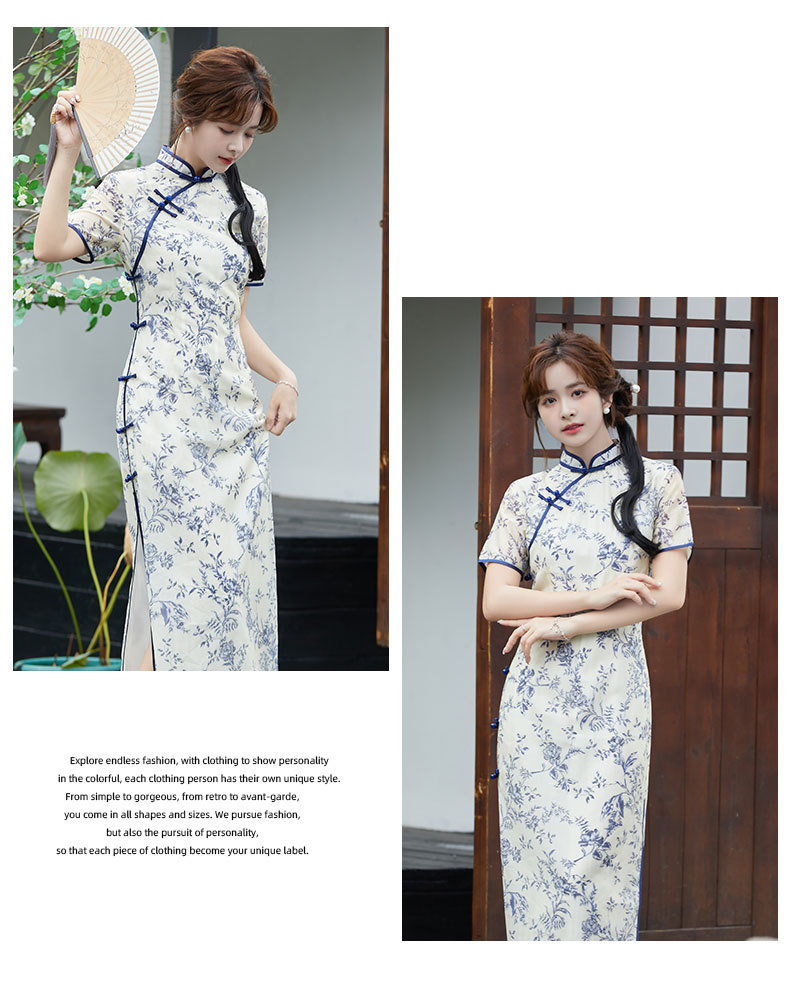 SYK-878-1旗袍年轻款三分袖女复古修身礼服2024年新款旗袍中式春秋款