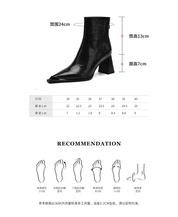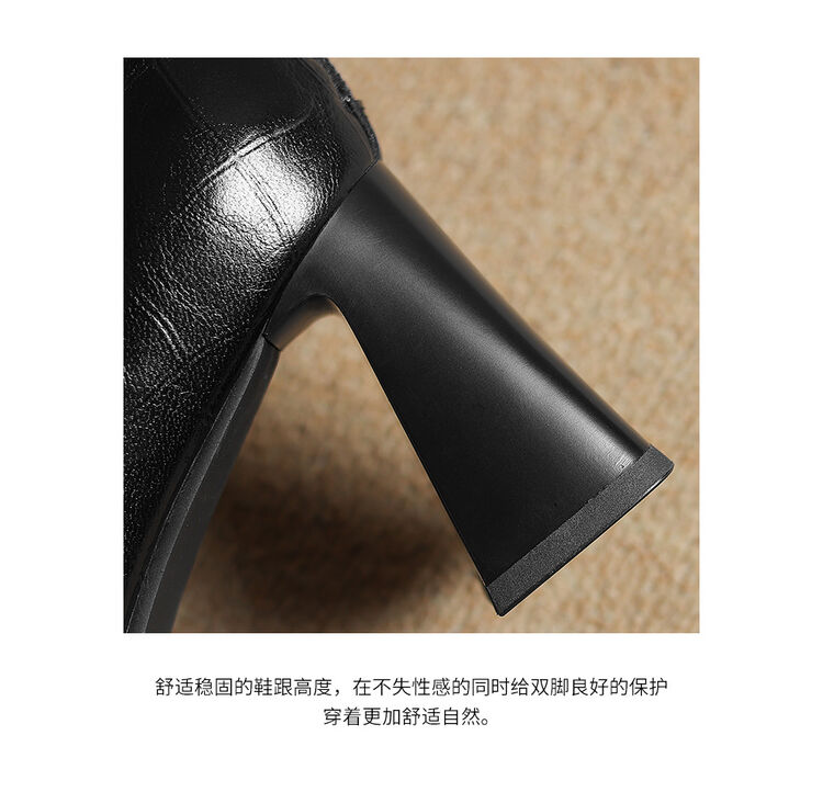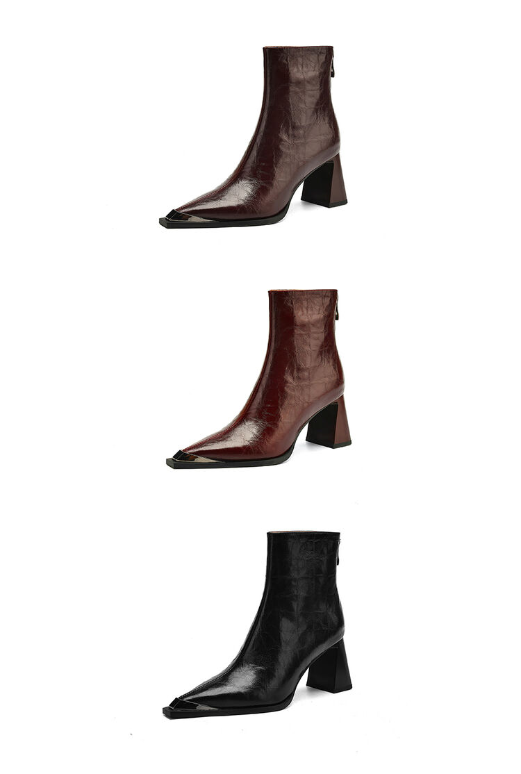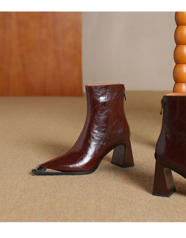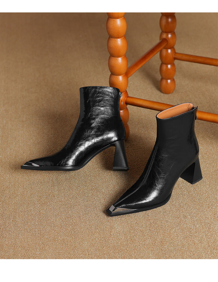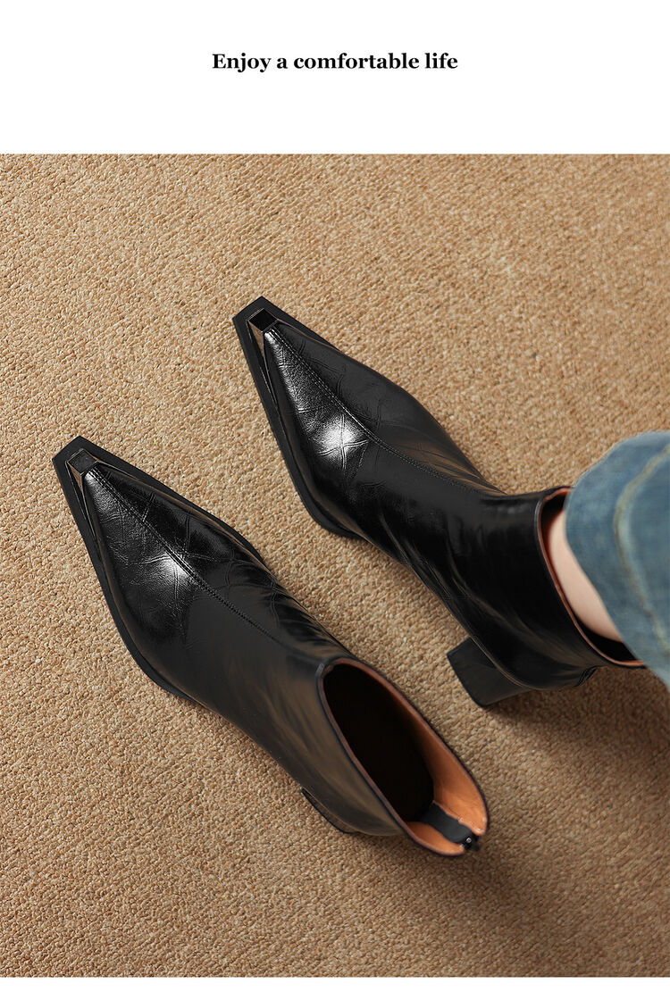 【预售5天】法式复古金属尖头粗跟气质时尚短靴女新款秋冬真皮显瘦马丁靴SLLK&sl-7828