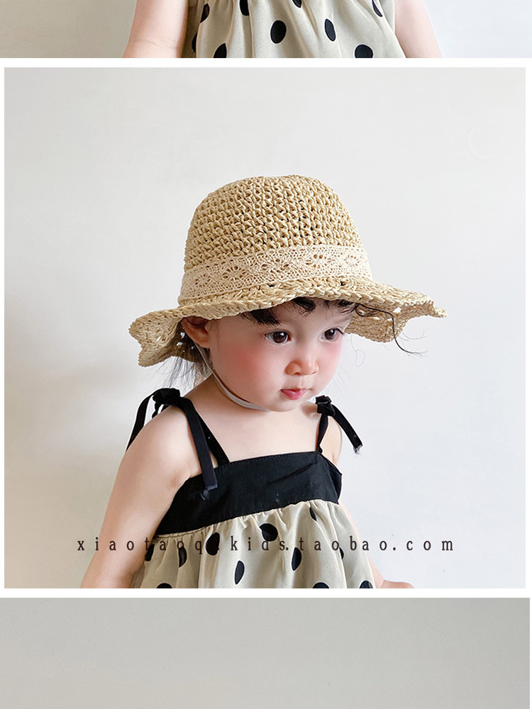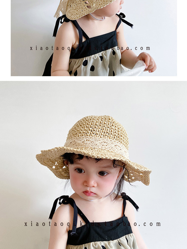【亲肤舒适,透气不闷热!】ins宝宝草帽夏季出游海边度假,儿童遮阳防晒帽女童甜美手工编织帽-lm!