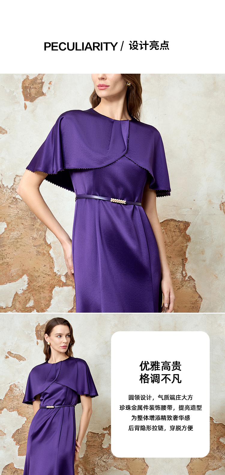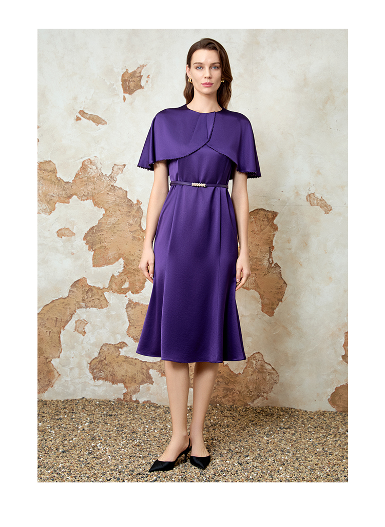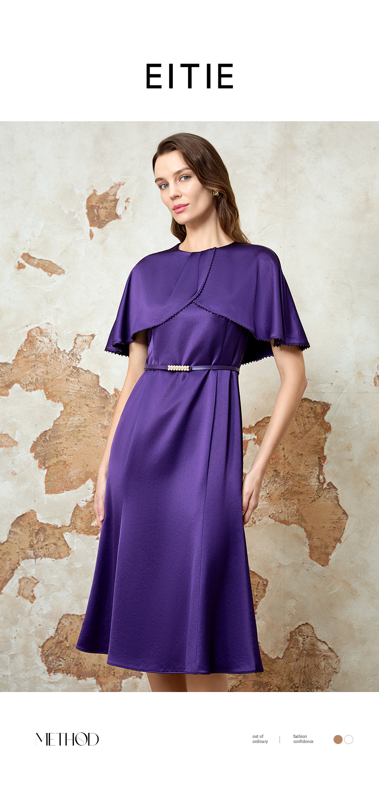EITIE爱特爱气质高级感优雅紫色礼服连衣裙春季新款8177808