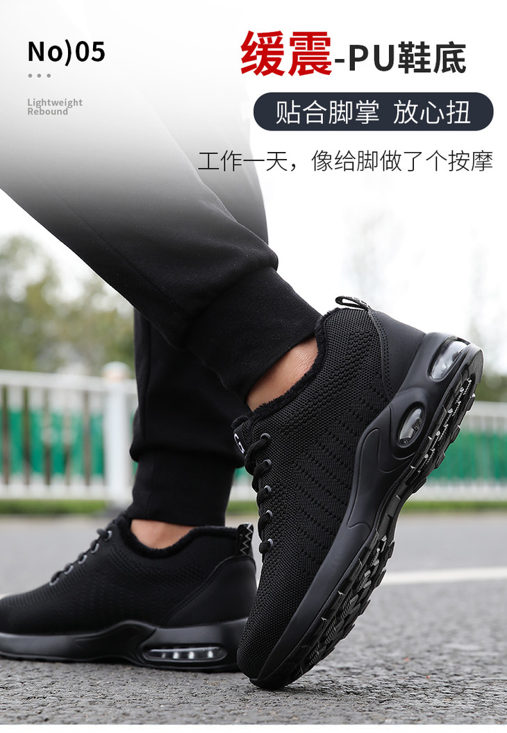 劳保鞋男防砸防刺穿橡胶底舒适气垫设计飞织网面加绒款安全鞋 【缓弹气垫】