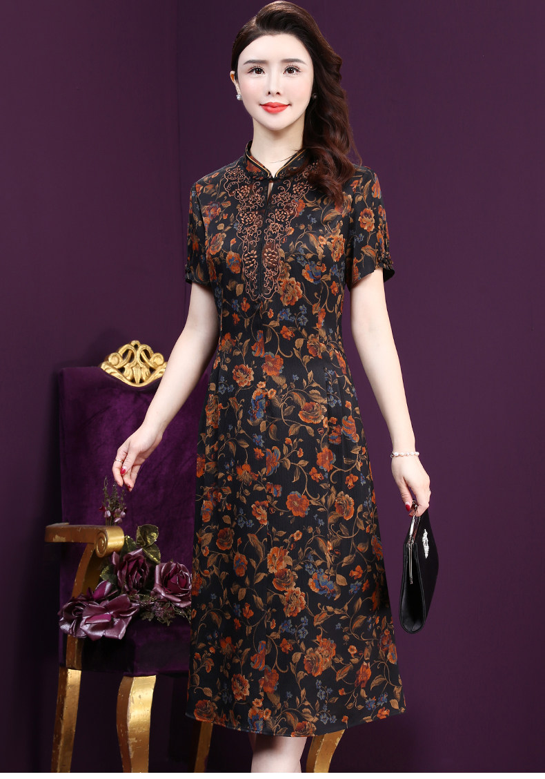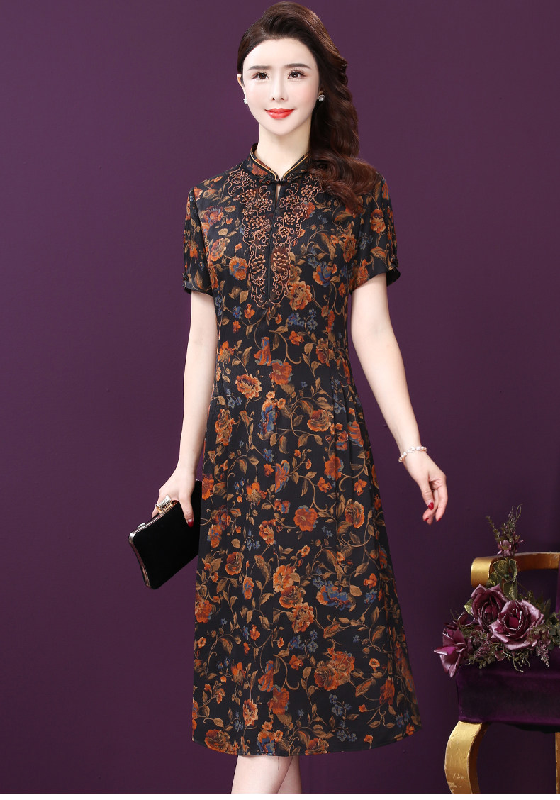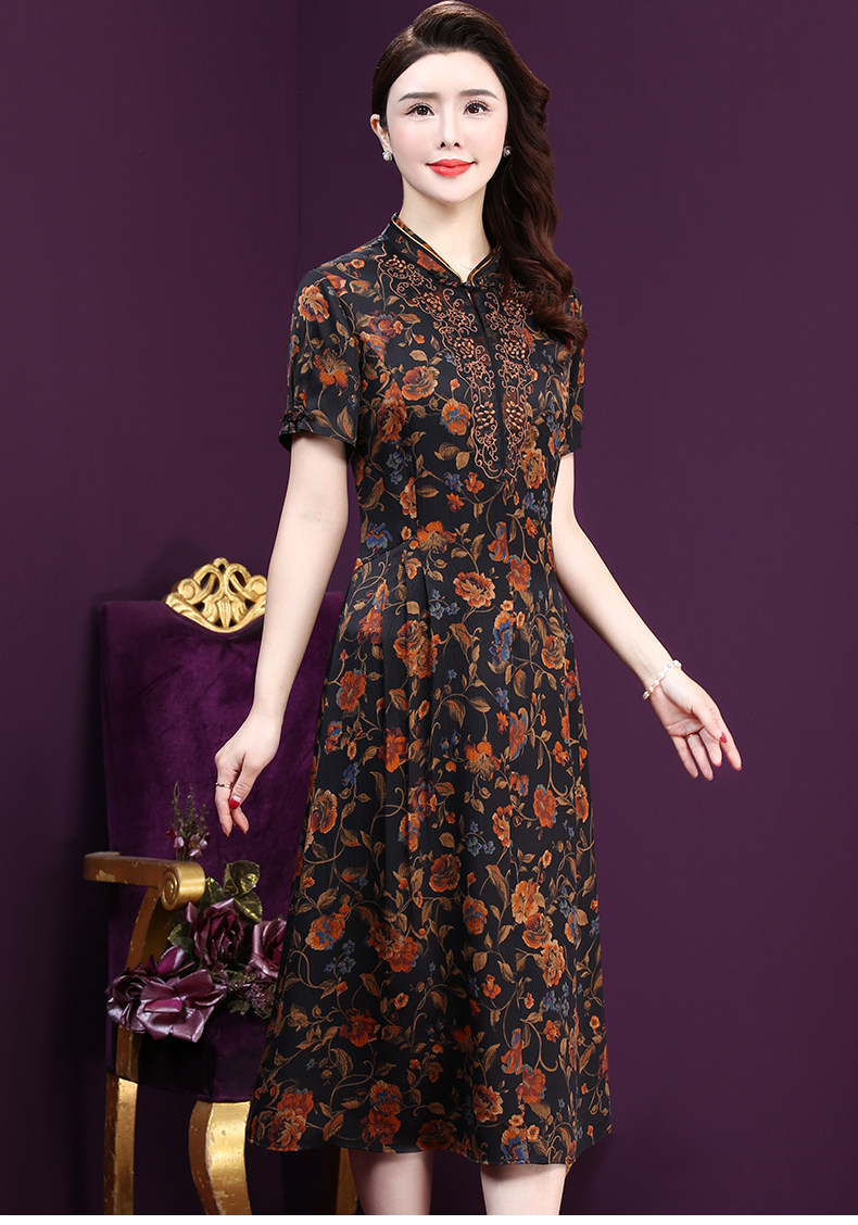 WXY-W-LI-A2062夏装新款重磅真丝莨绸中长款香云纱裙连衣裙