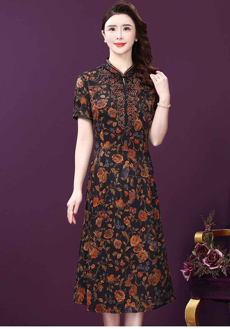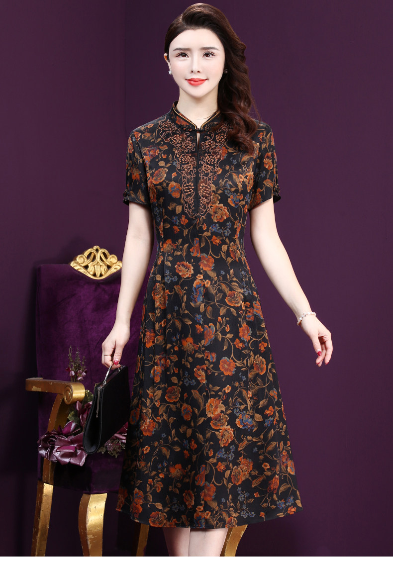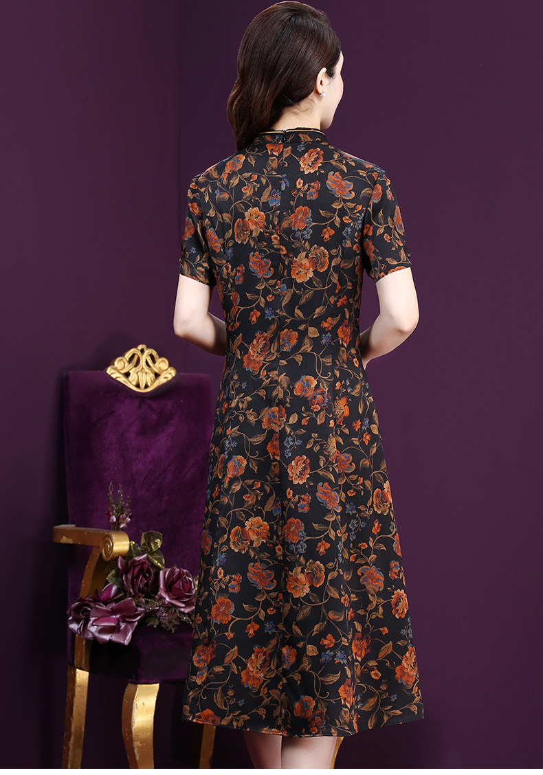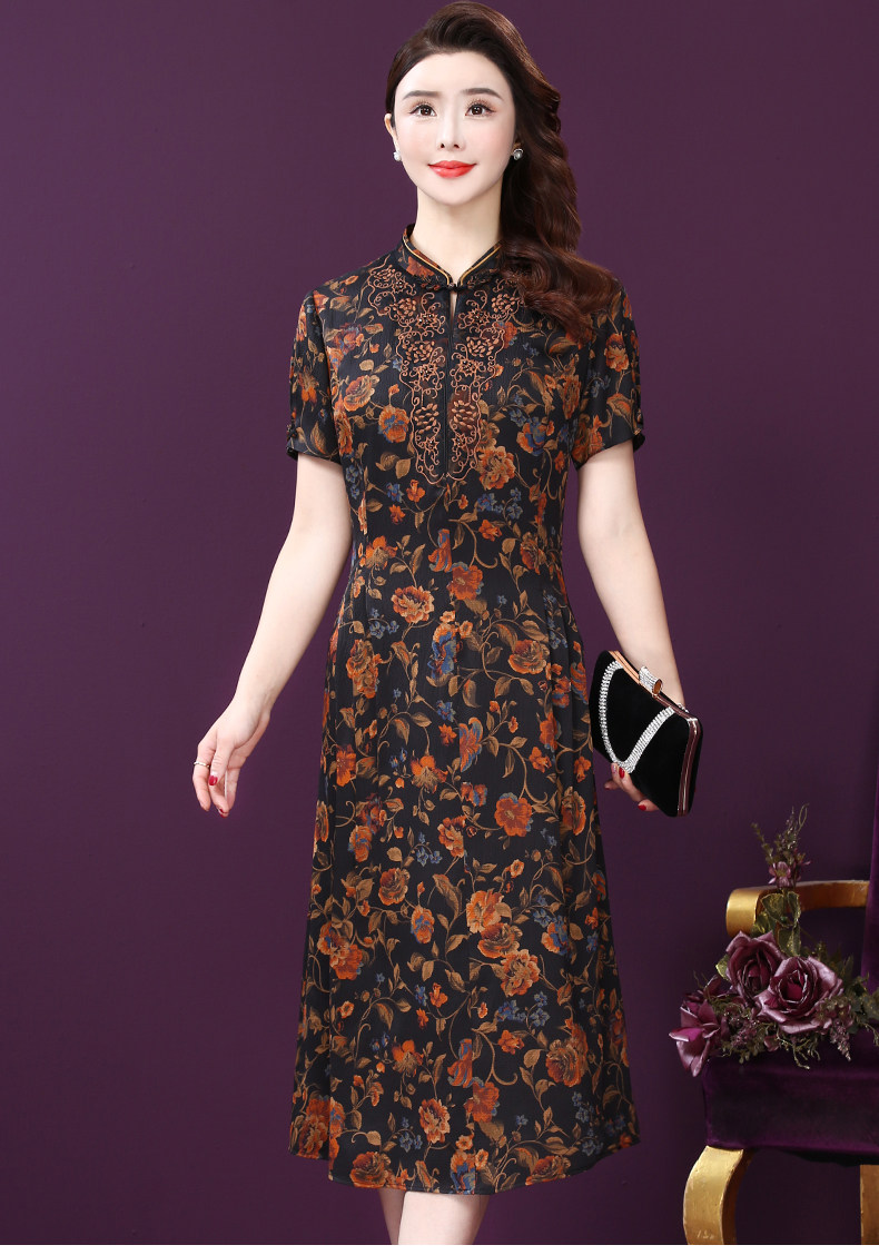 WXY-W-LI-A2062夏装新款重磅真丝莨绸中长款香云纱裙连衣裙