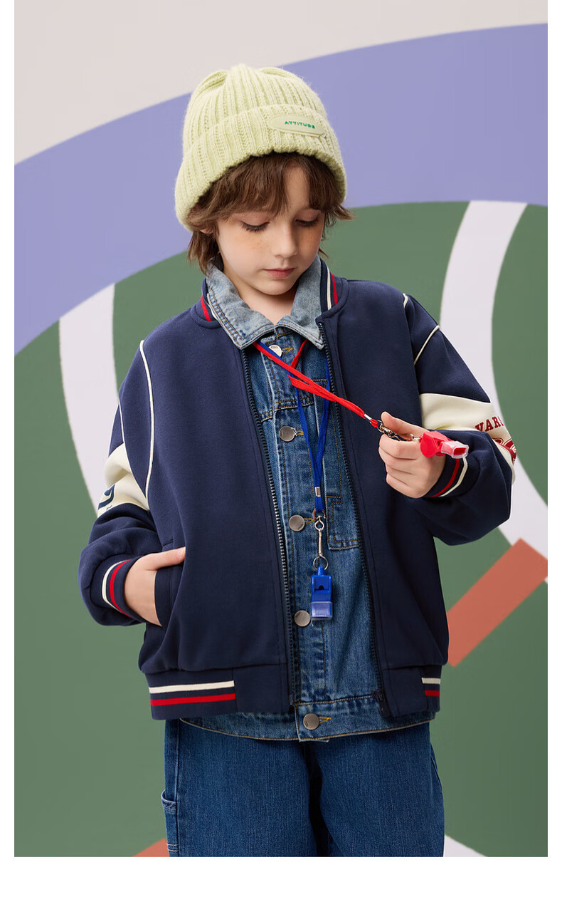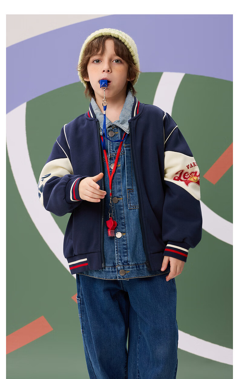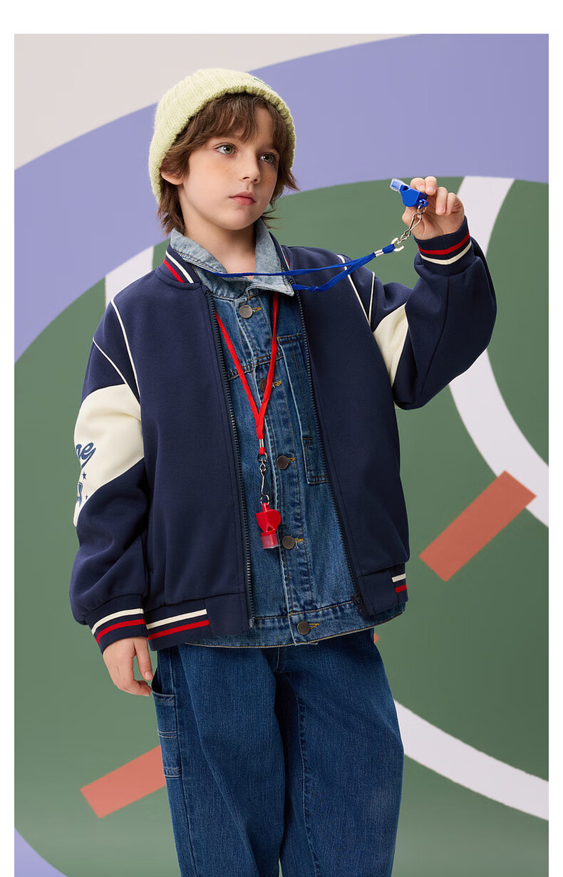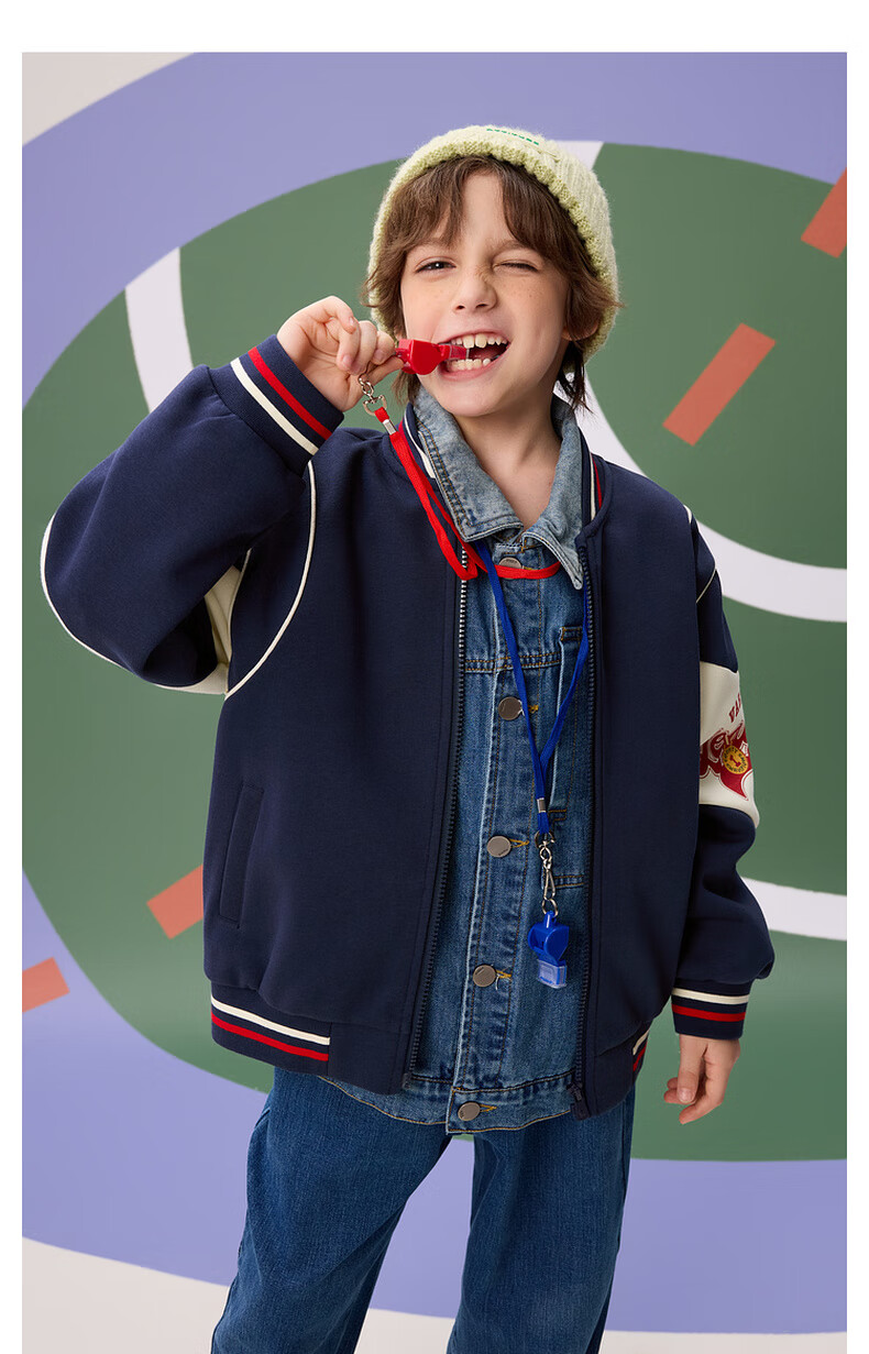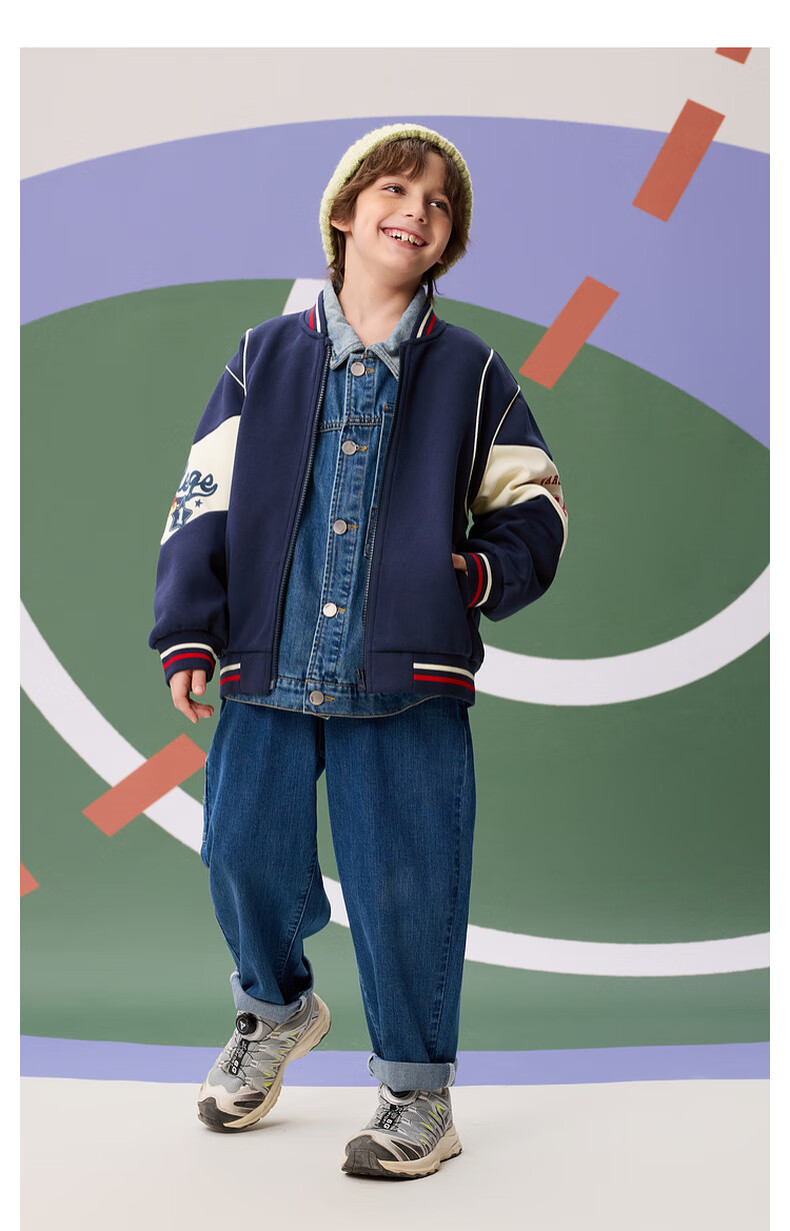 【MQD】秋季新品男大童学院风撞色拼接宽松休闲棒球服外套