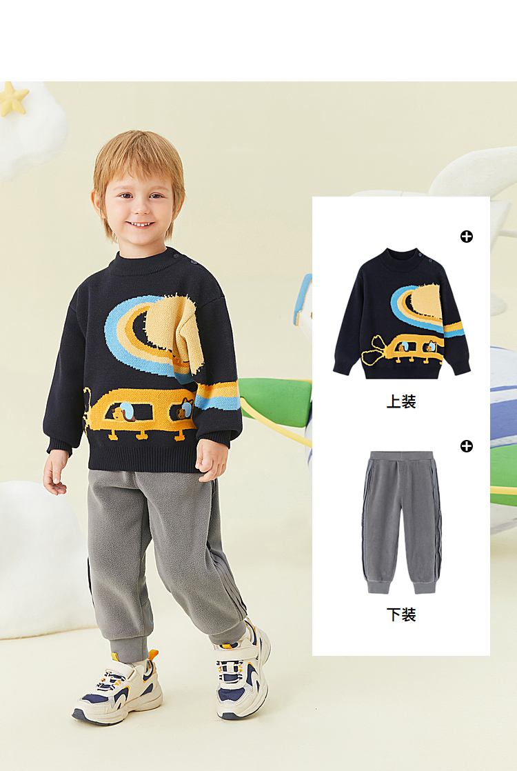 【秒】【专柜同款】MQD童装男童冬季新款加绒针织裤男宝宝加厚裤子潮