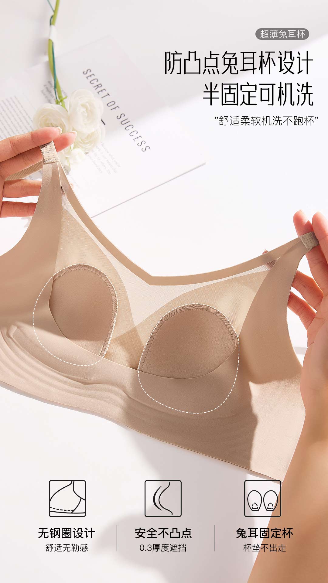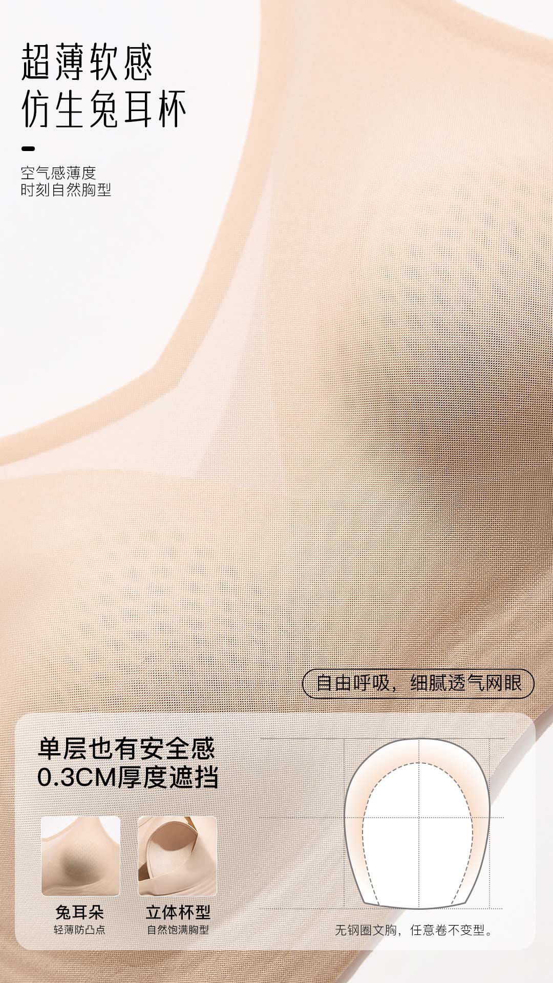 58 华歌尔网纱兔耳杯到货!注意:这是一个大品牌的超级爆款,工厂说网上最低限价79元呢!法式美学,轻盈显瘦!与肌肤合二为一的艺术,让穿戴,进化为“融入”。主打一个轻盈自在0负担穿上直接忘记它的存在!凉感面料会自由呼吸,细腻透气网眼,穿上直接开启自由呼吸模式,每一寸网眼都在疯狂透气!0.3CM厚度兔耳朵杯 轻薄防凸点,立体杯型 自然饱满胸型!下摆和侧比都是高密度点果冻点胶,完美承托,收副乳不外扩!贴身0束缚,前胸深V贴合隐形又结实!三排四扣自由调节,松紧随你心意!大货4个颜色:黑色,粉底液肤,冰灰色,香槟白!大货4个尺码:M L XL 2XL (尺码穿戴说明:M适合70和75AB文胸,L适合75C和80AB,XL适合80C和85AB,2XL适合85C和90AB)