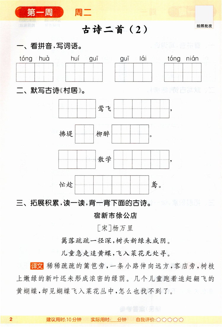 2026春小学语文默写能手 2下 人教版 部编版 江苏专用 二年级下册 小学语文同步教辅习题集 朱海峰 主编 浙江教育出版社