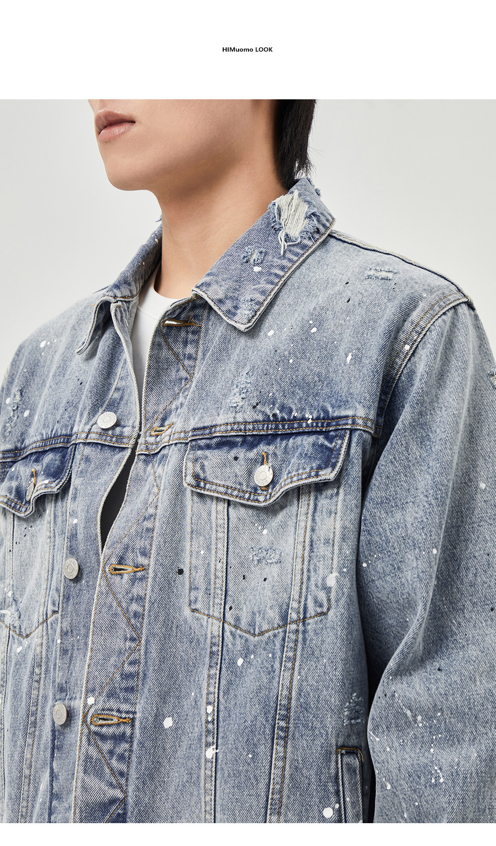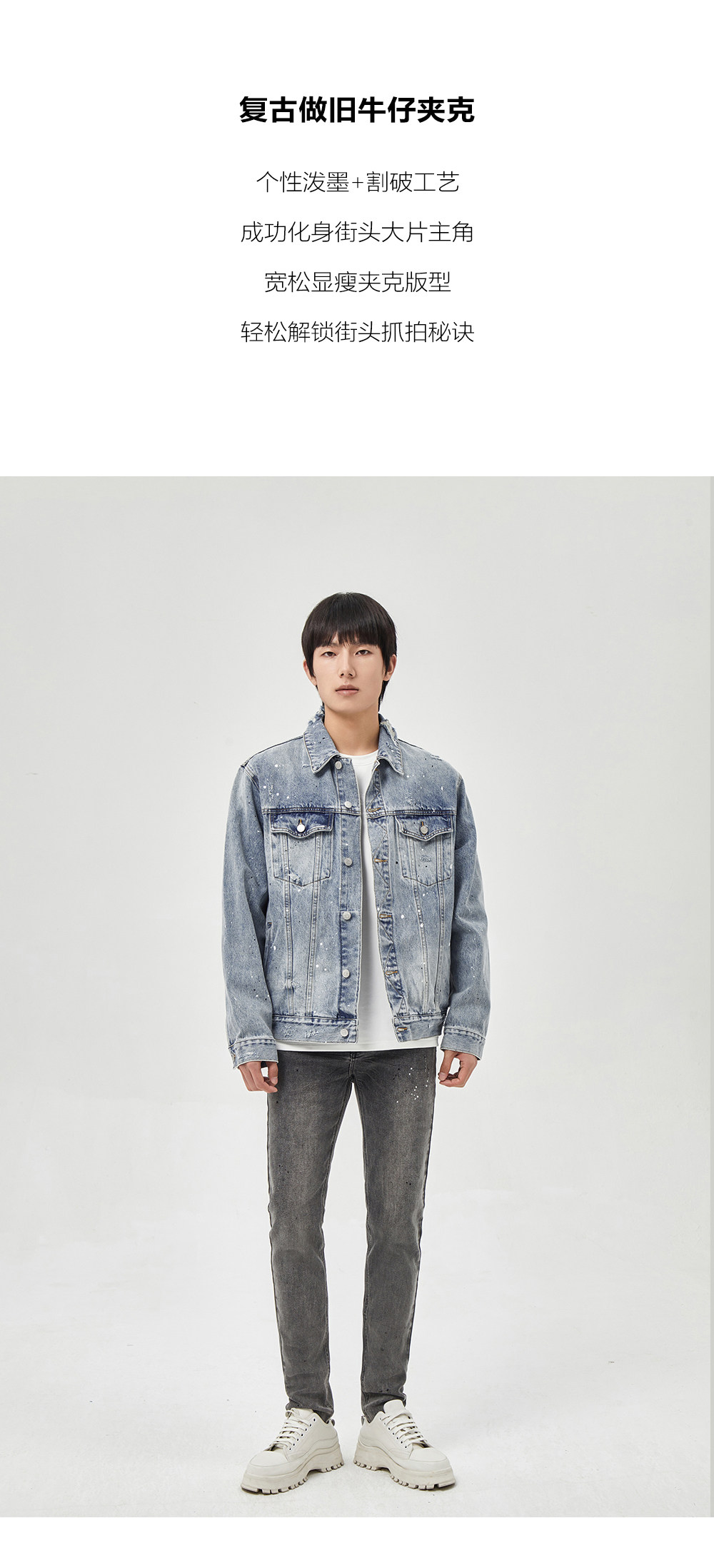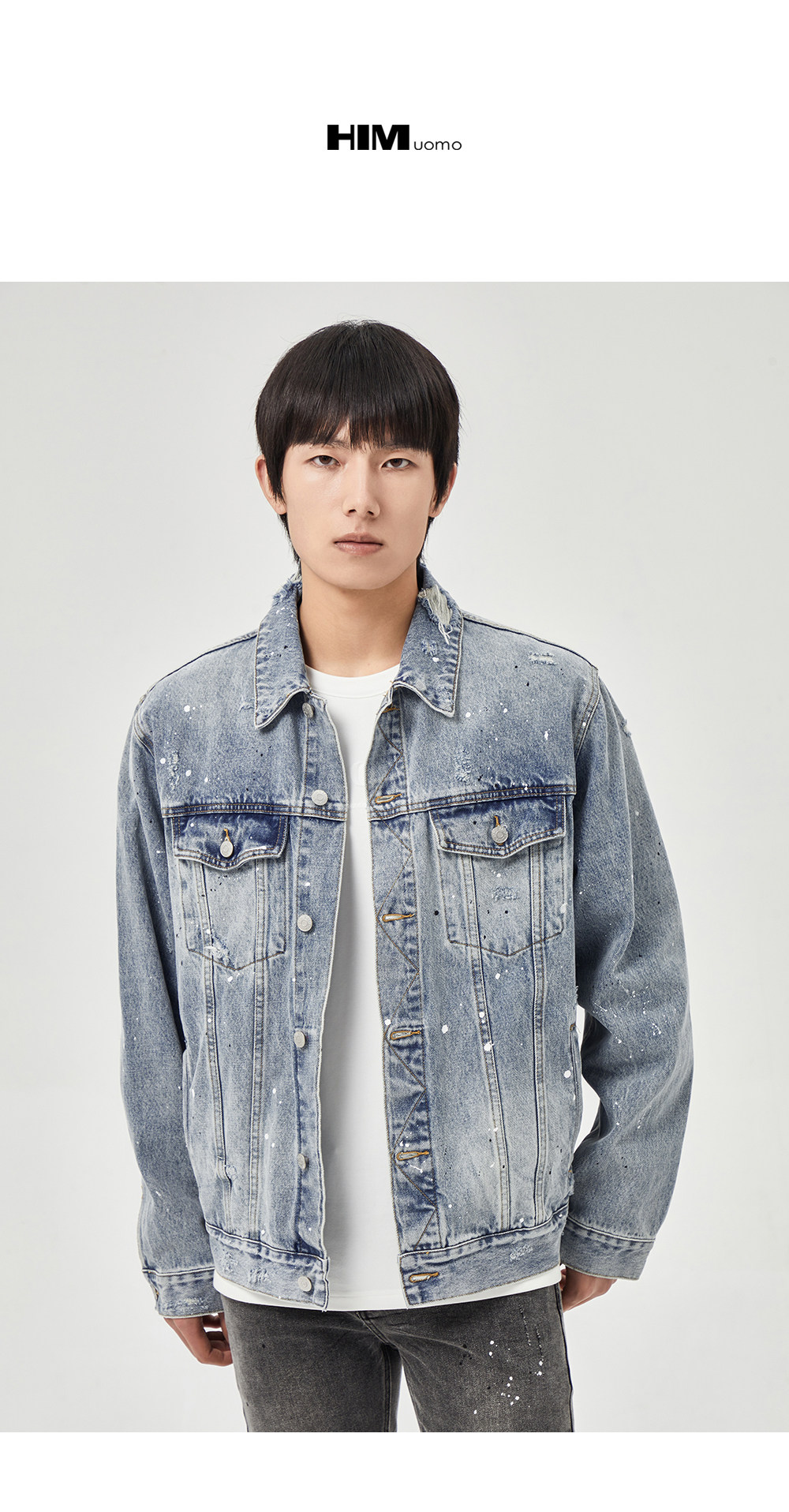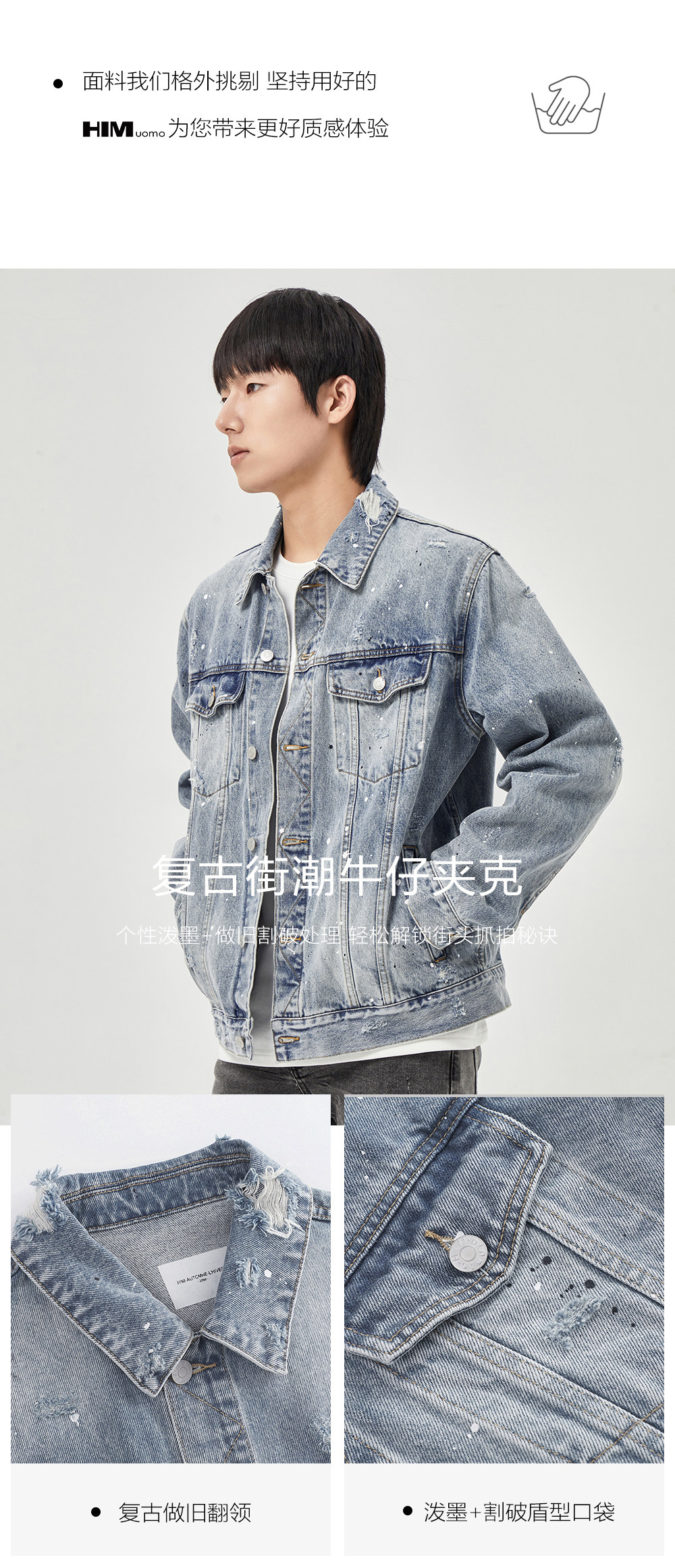 HIM漢崇 做旧割破牛仔外套男潮流个性泼墨宽松休闲夹克 2025秋季