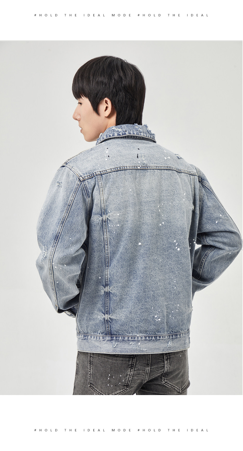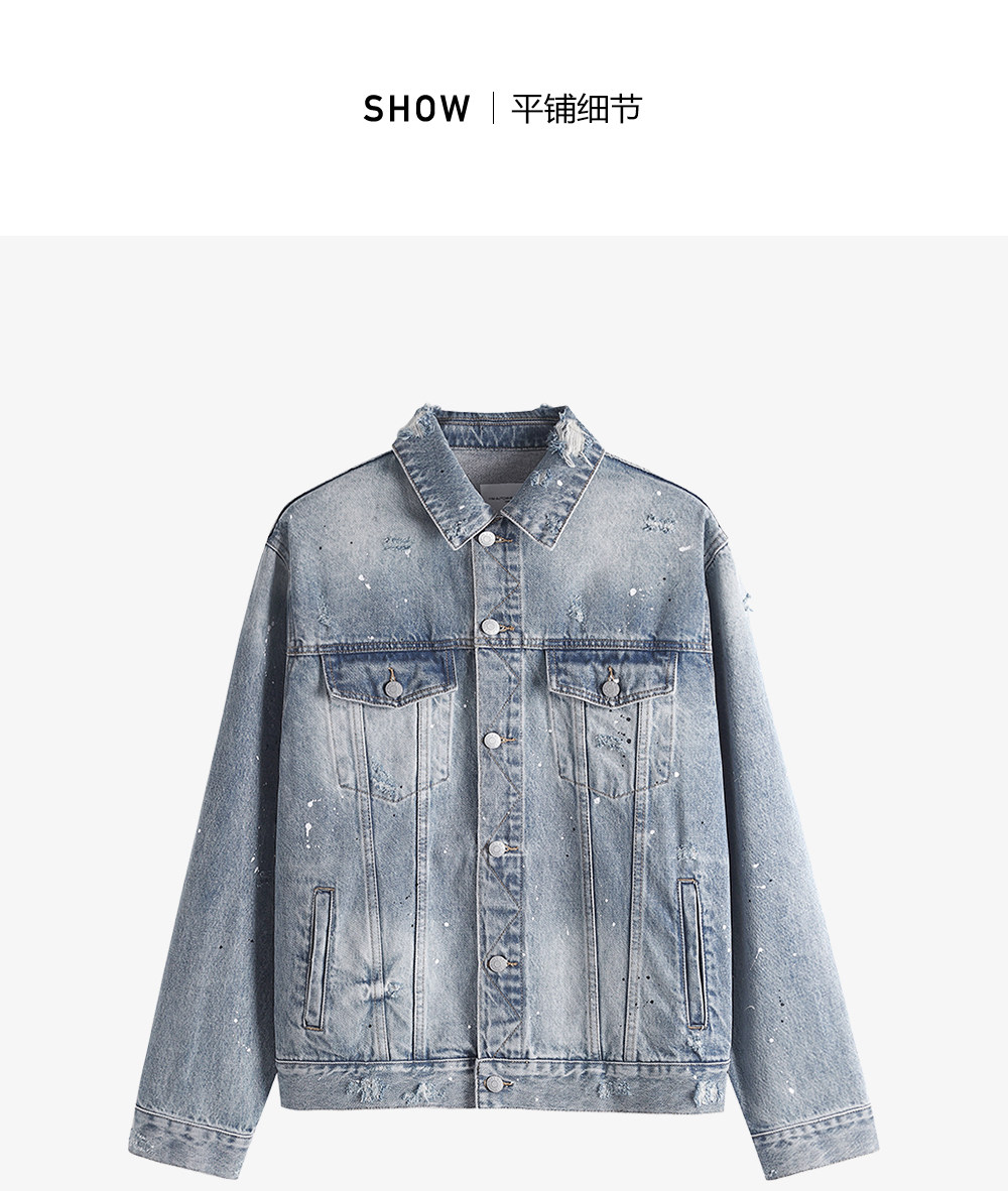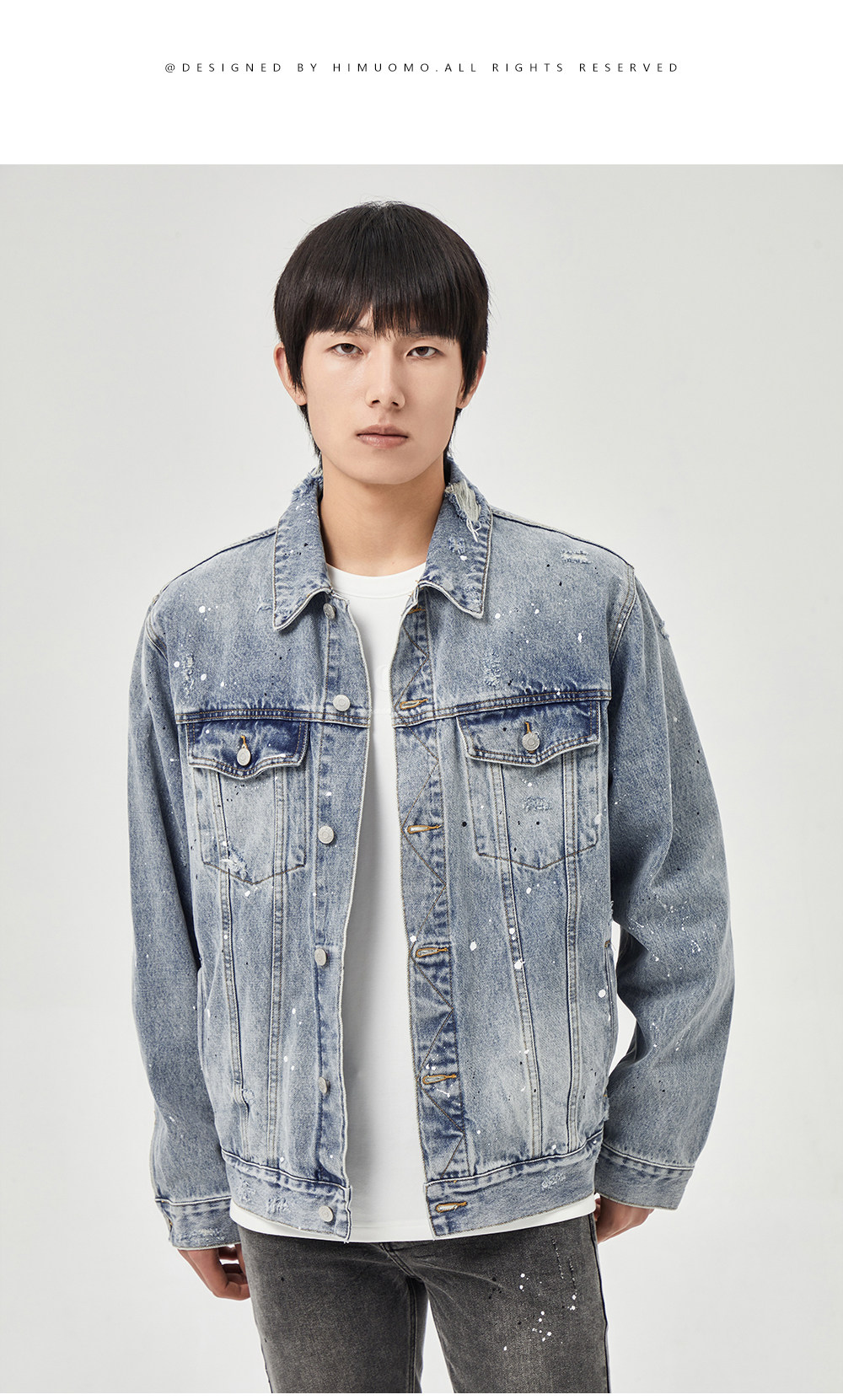 HIM漢崇 做旧割破牛仔外套男潮流个性泼墨宽松休闲夹克 2025秋季