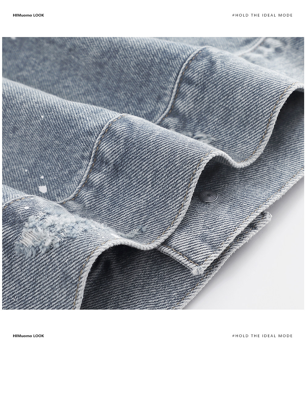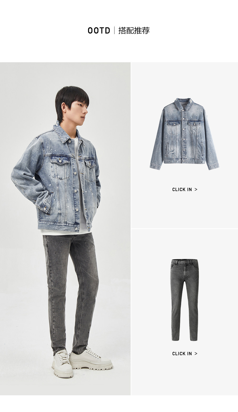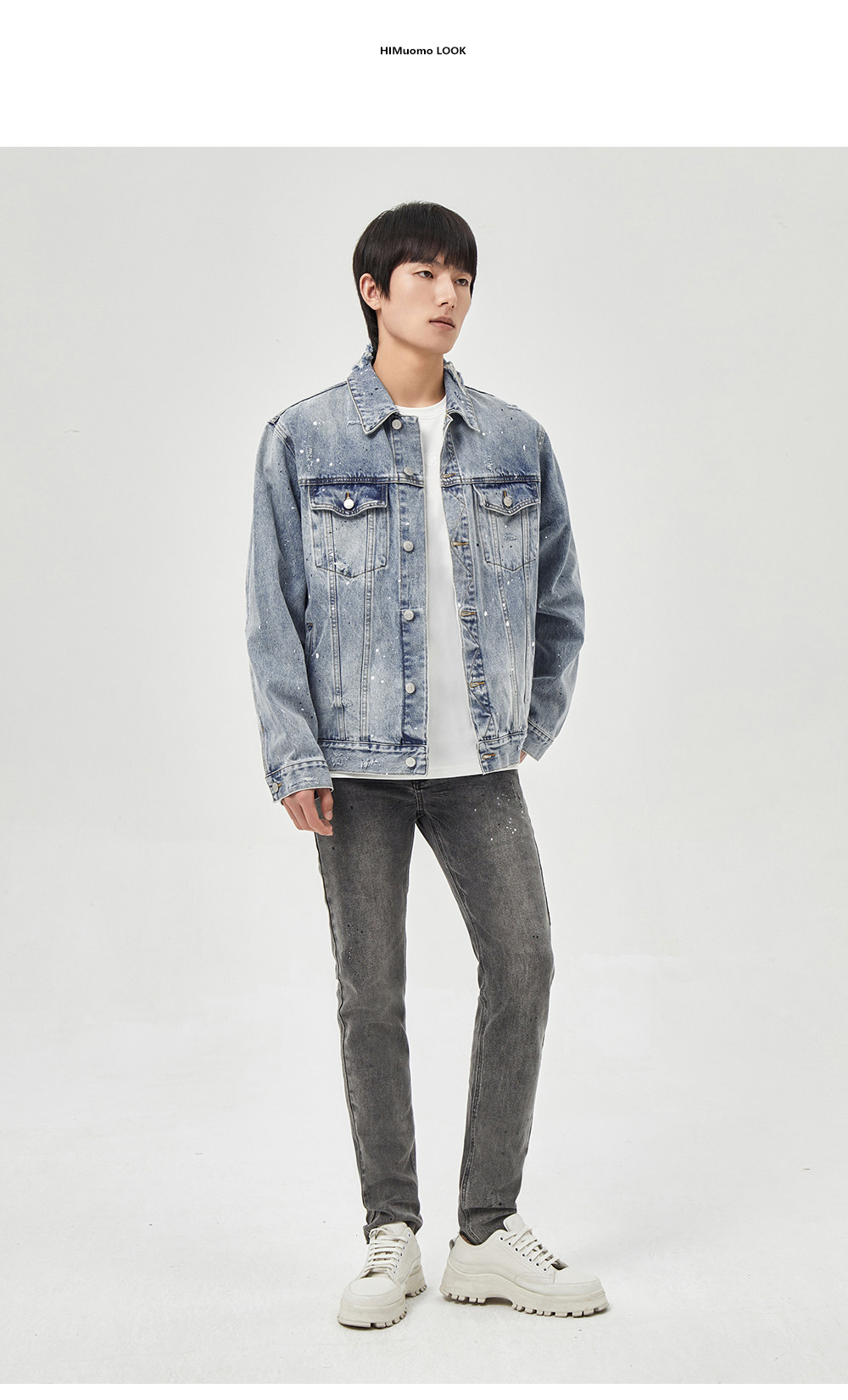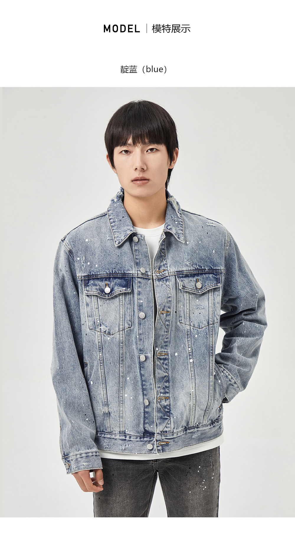 HIM漢崇 做旧割破牛仔外套男潮流个性泼墨宽松休闲夹克 2025秋季