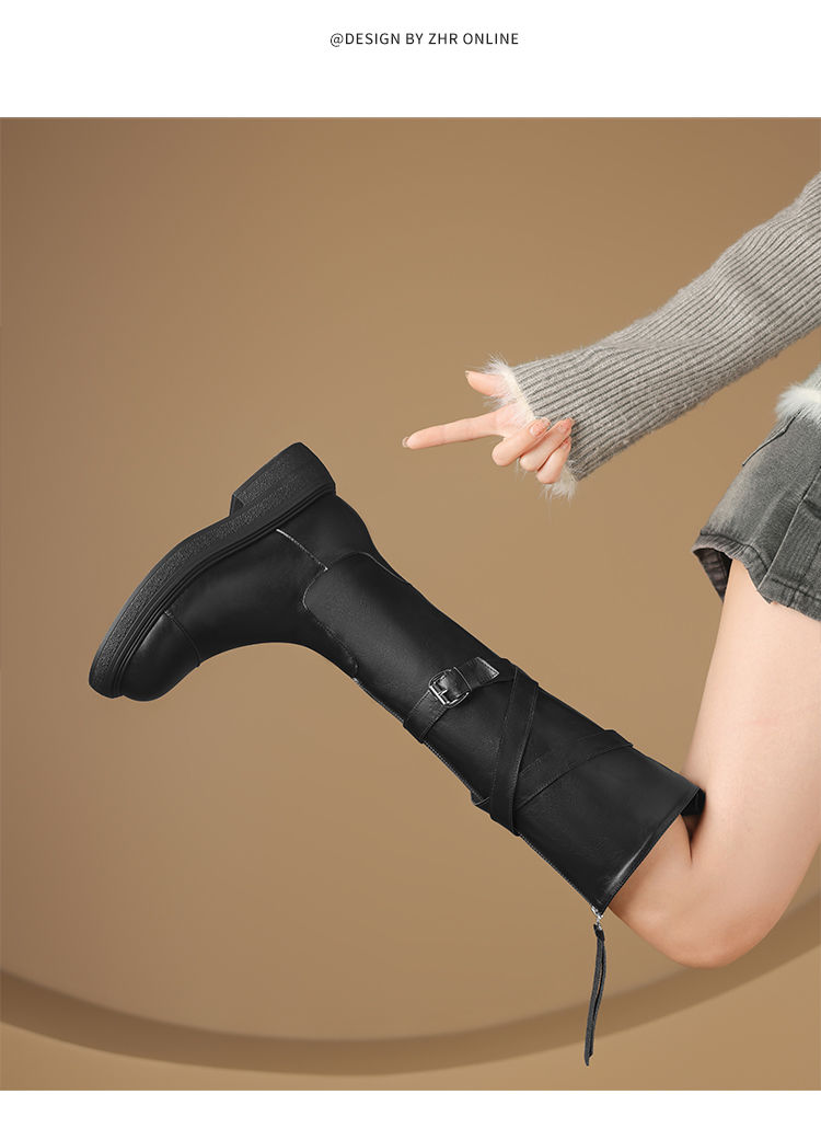 ZHR则则废土风长筒靴复古骑士靴2024新款英伦百搭长靴厚底女靴子