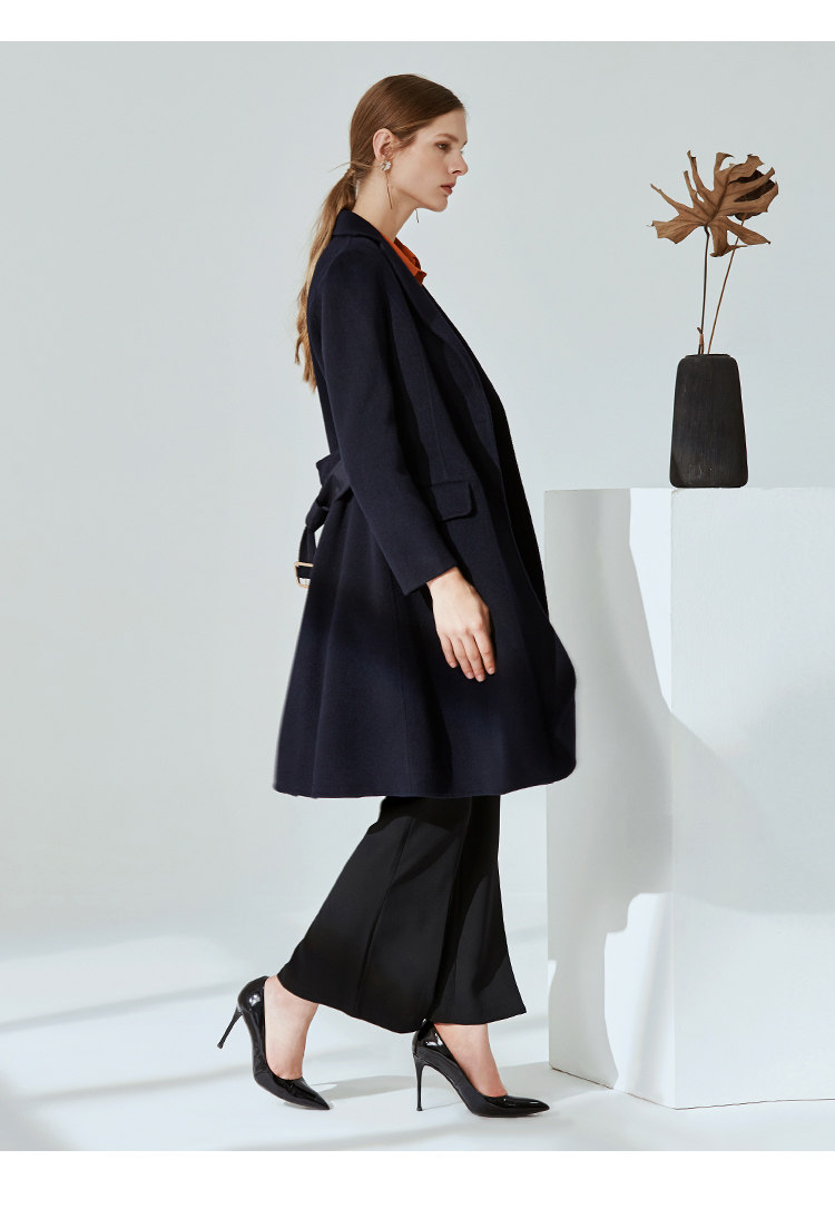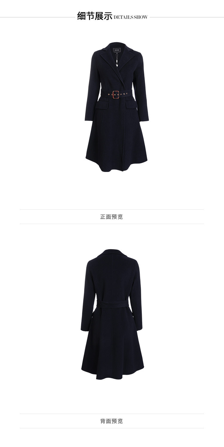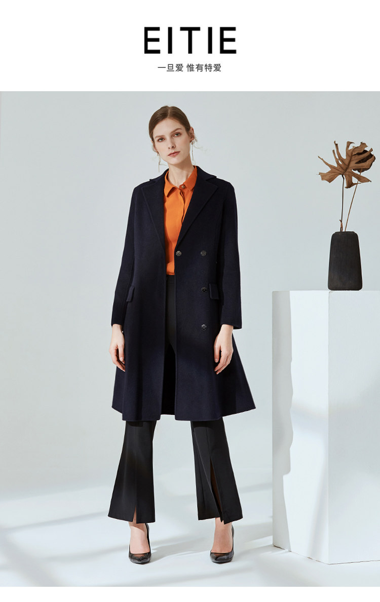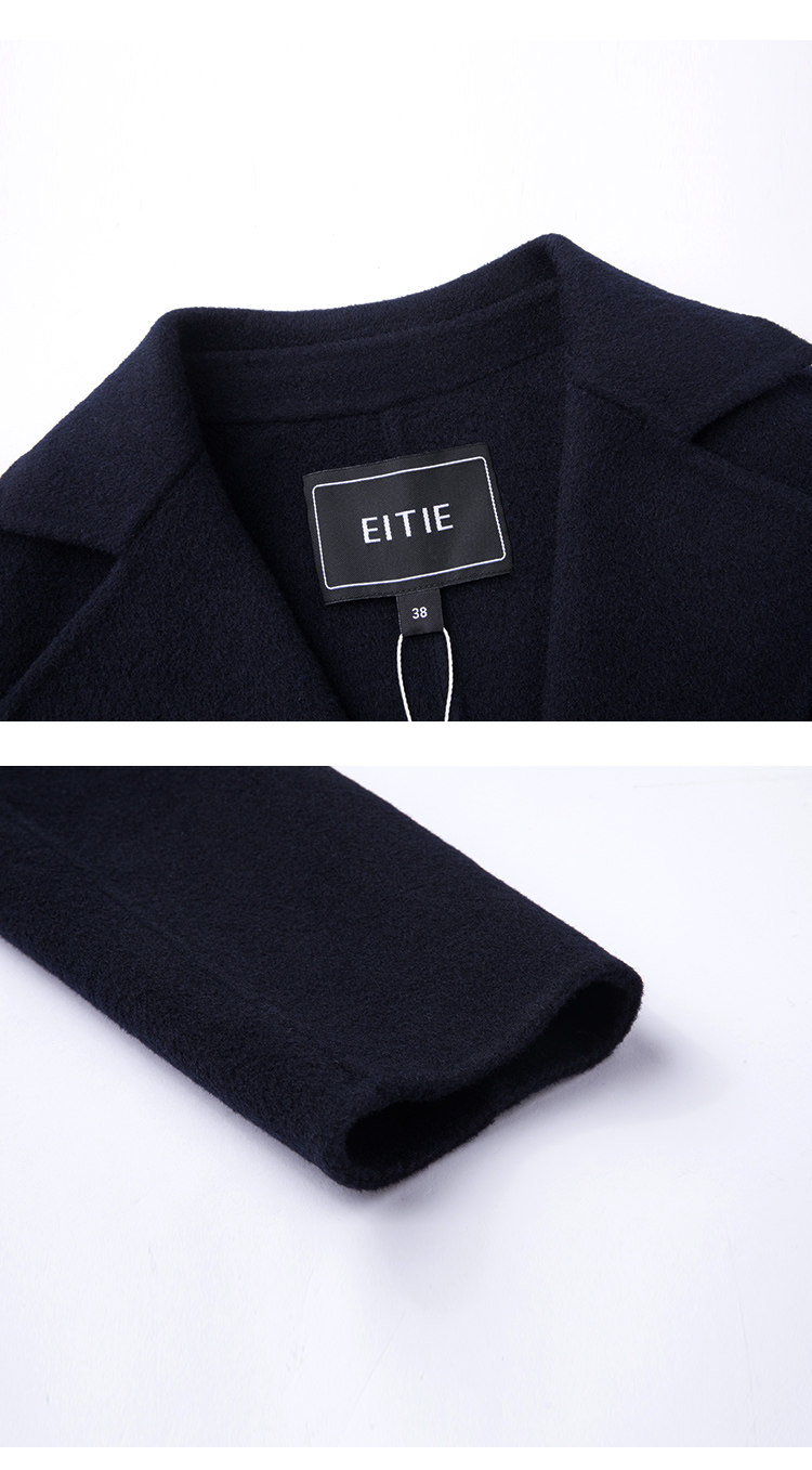 EITIE爱特爱冬季时尚翻领羊毛呢大衣中长款厚外套女收腰6014711