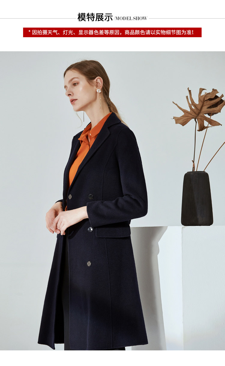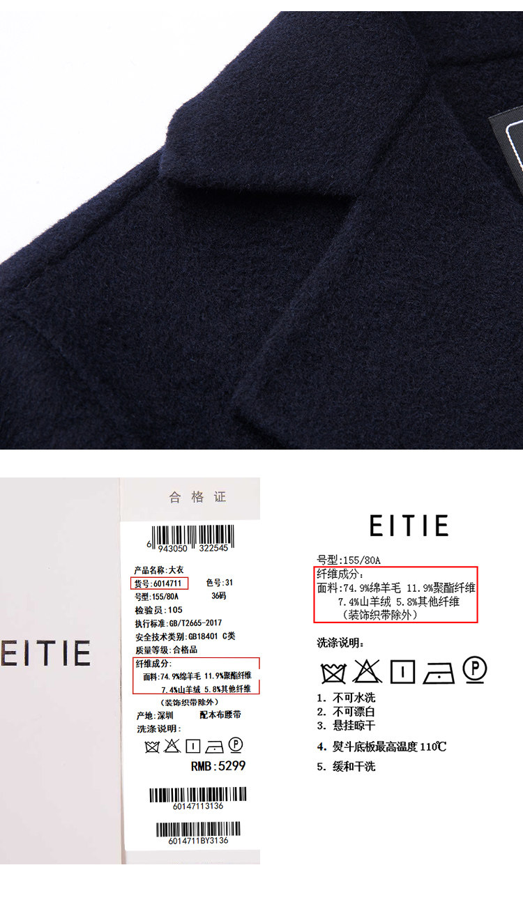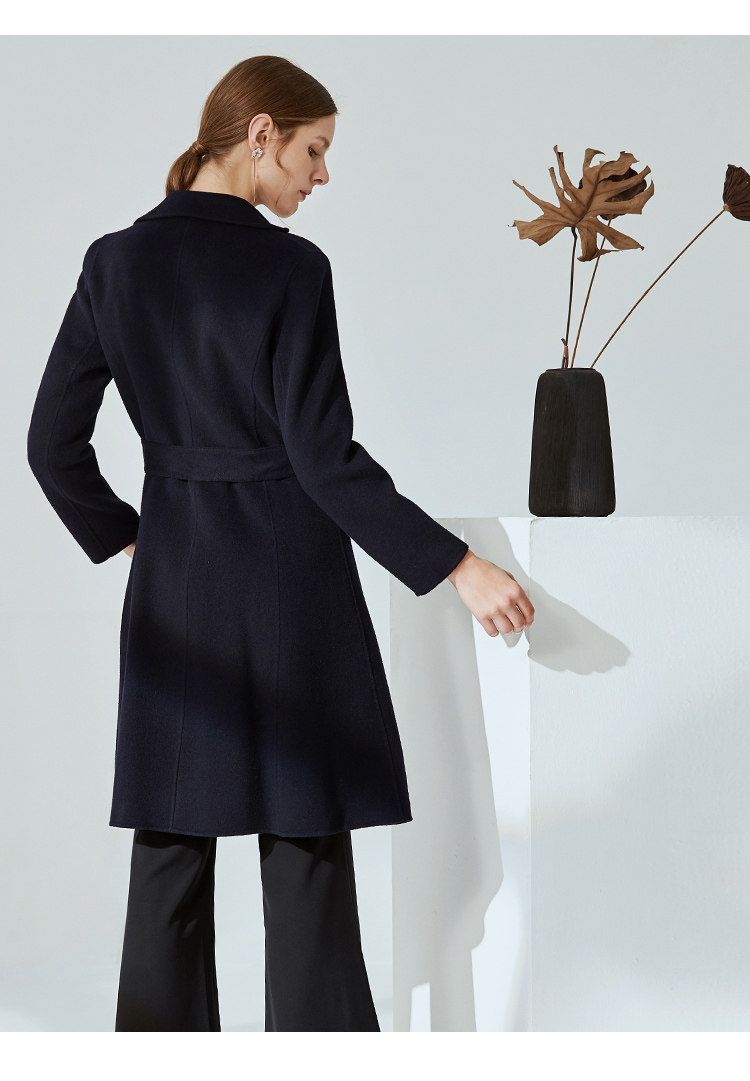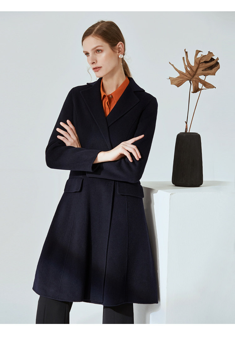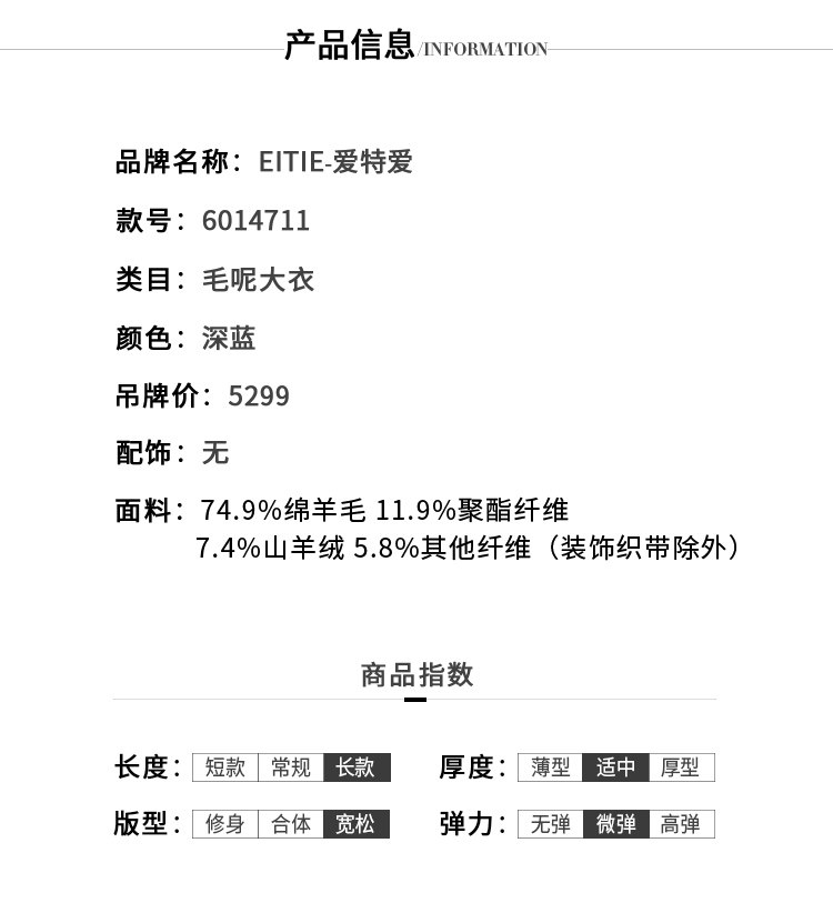 EITIE爱特爱冬季时尚翻领羊毛呢大衣中长款厚外套女收腰6014711