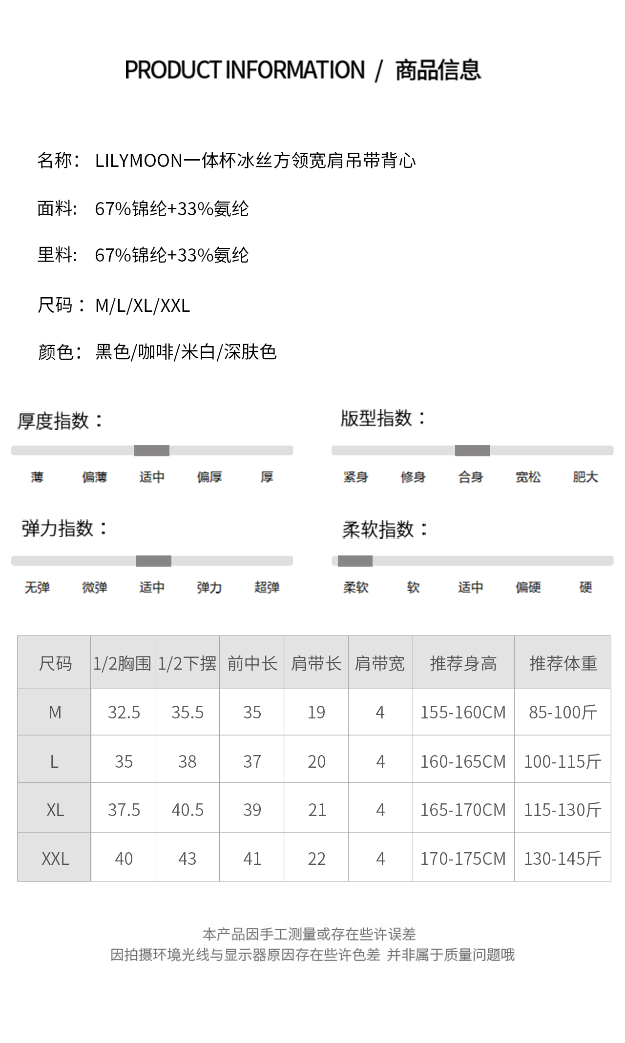 LILYMOON【冰丝宽肩吊带】一体杯方领背心内搭遮副乳