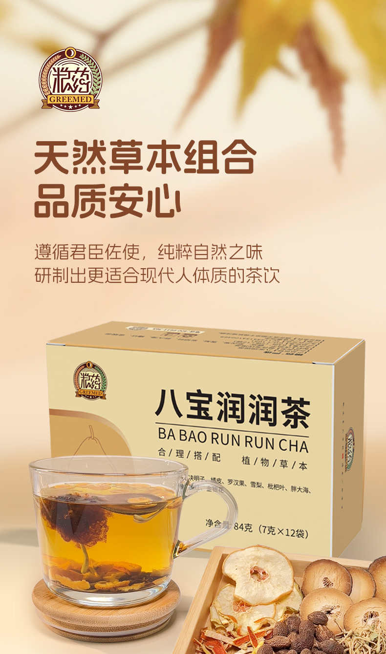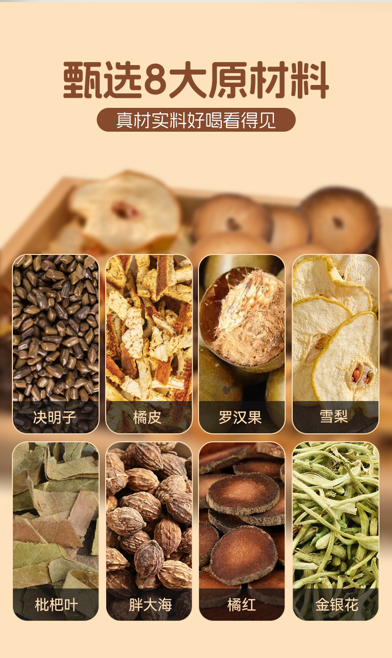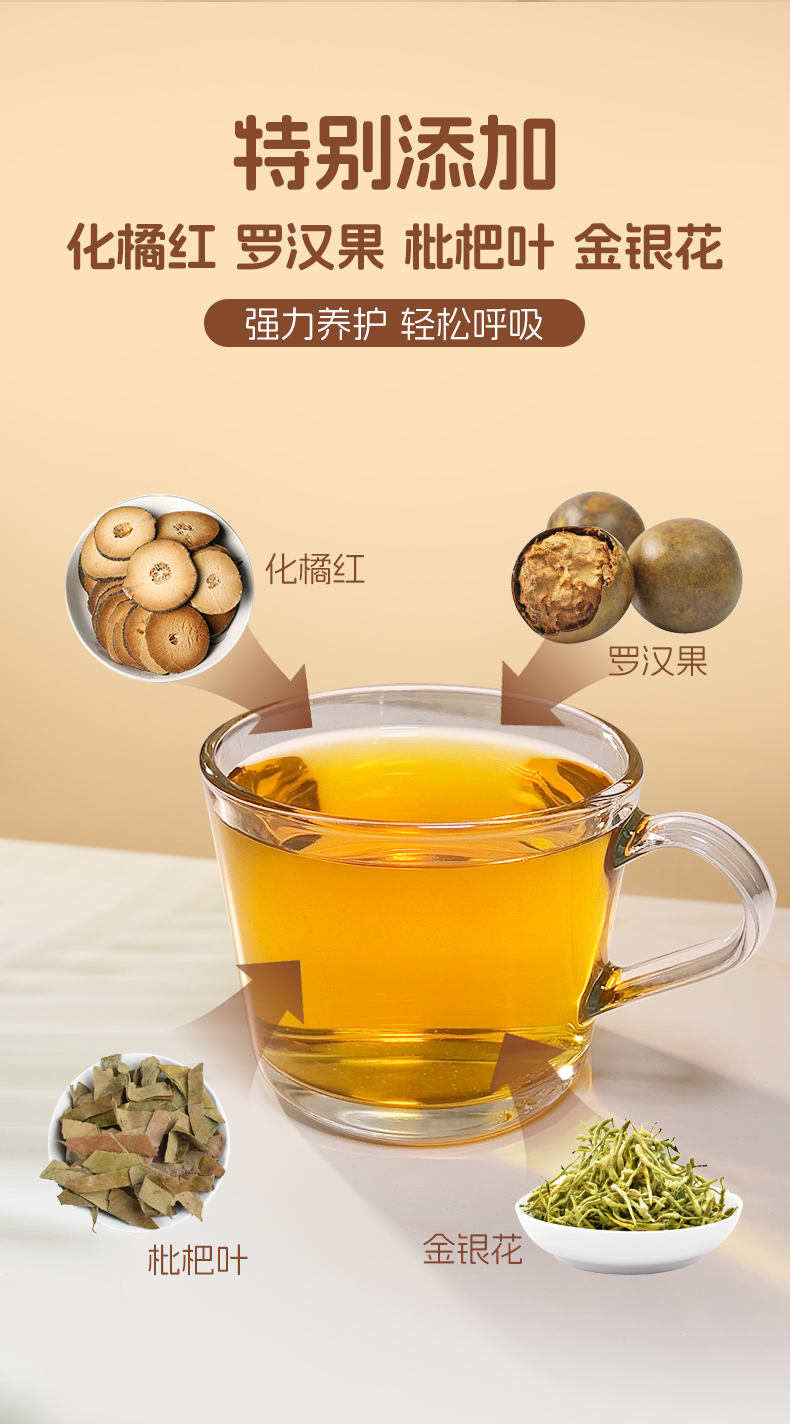 【粮药LY】八宝润润茶橘红罗汉果雪梨批把叶嗓子组合装养生茶包冬天不干燥【7克*12袋】