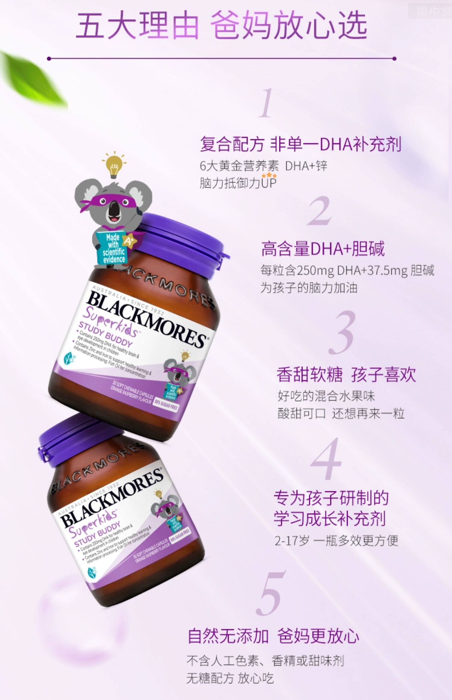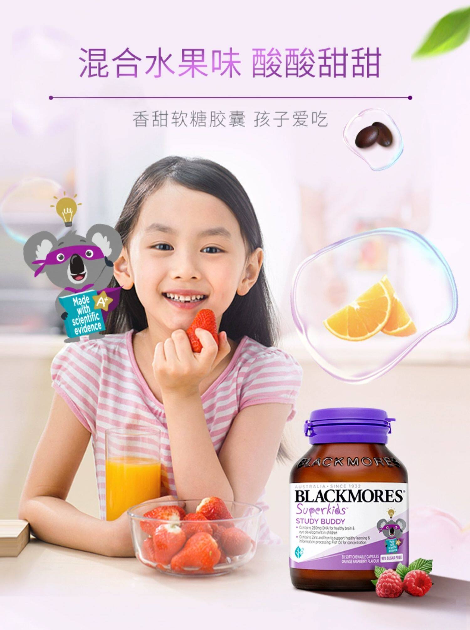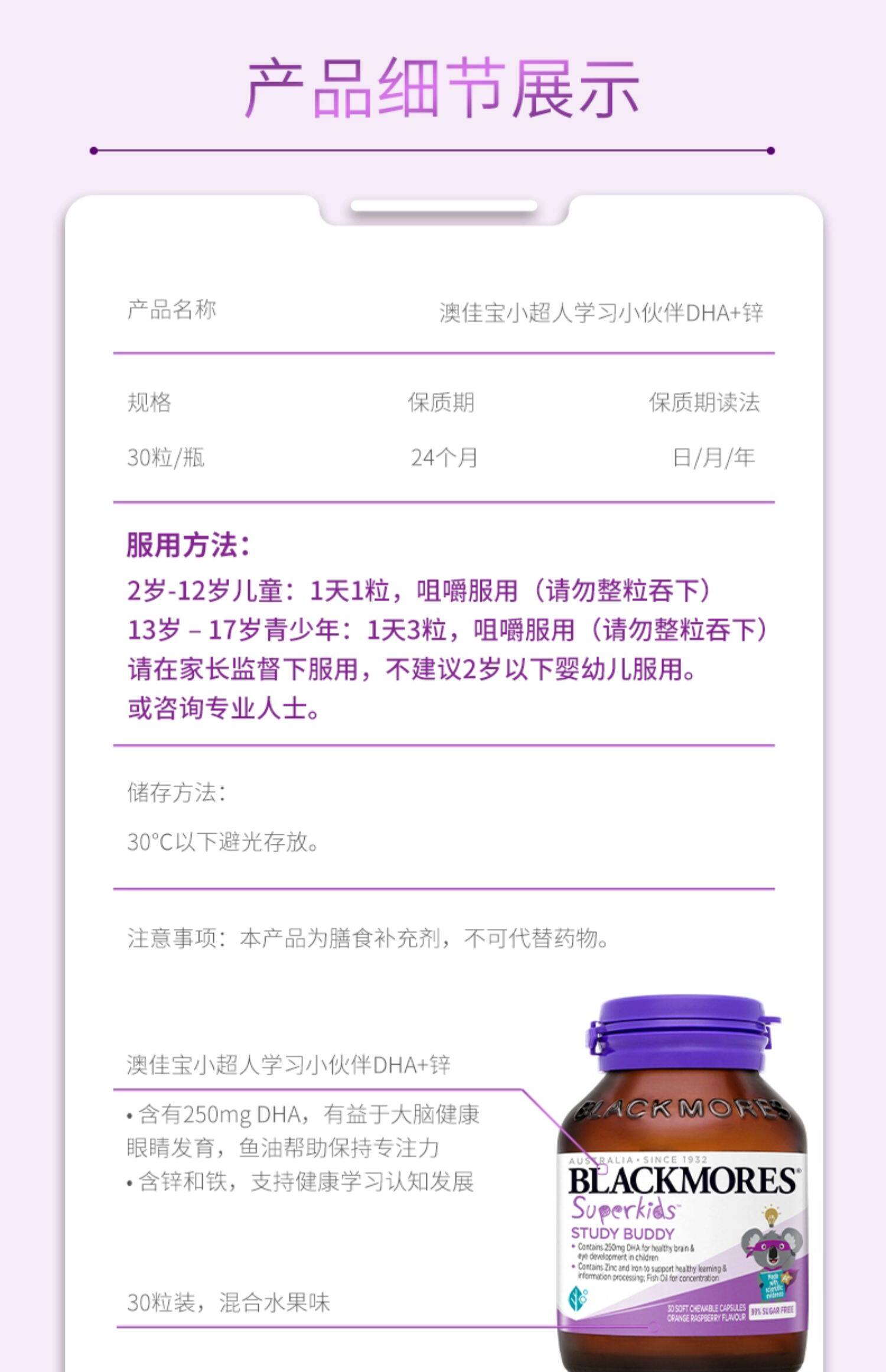 【保税】澳洲 澳佳宝Blackmores小超人学习小伙伴DHA+锌 30粒