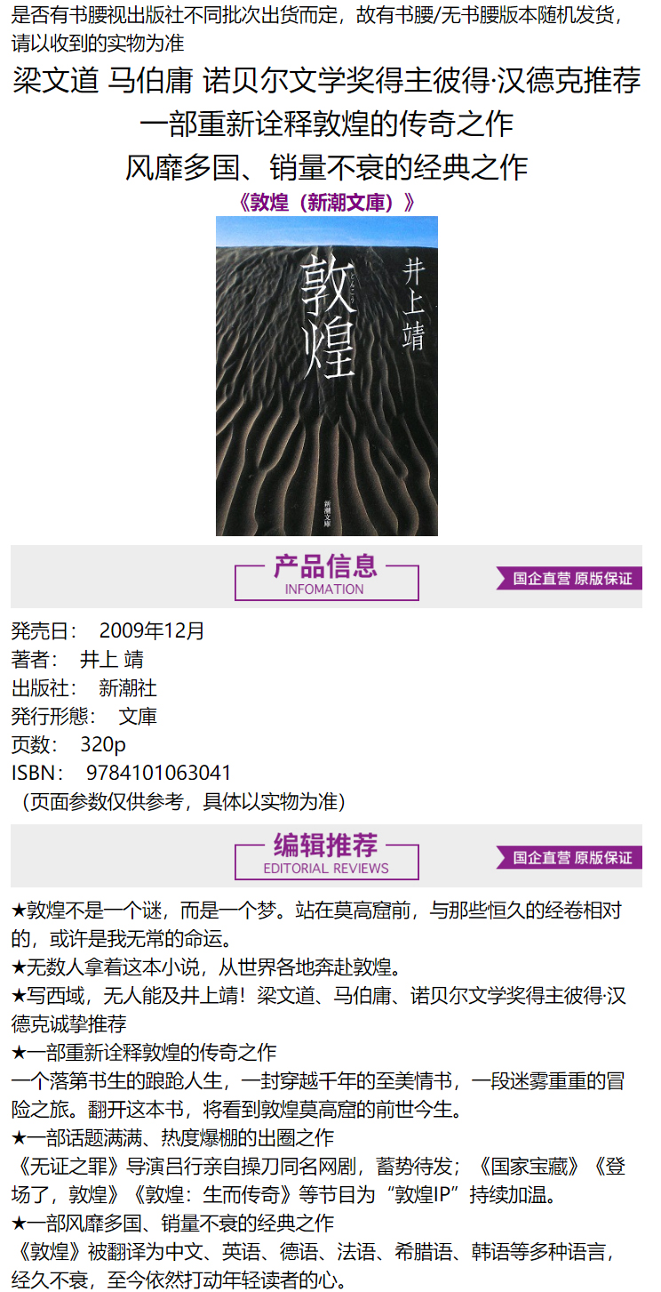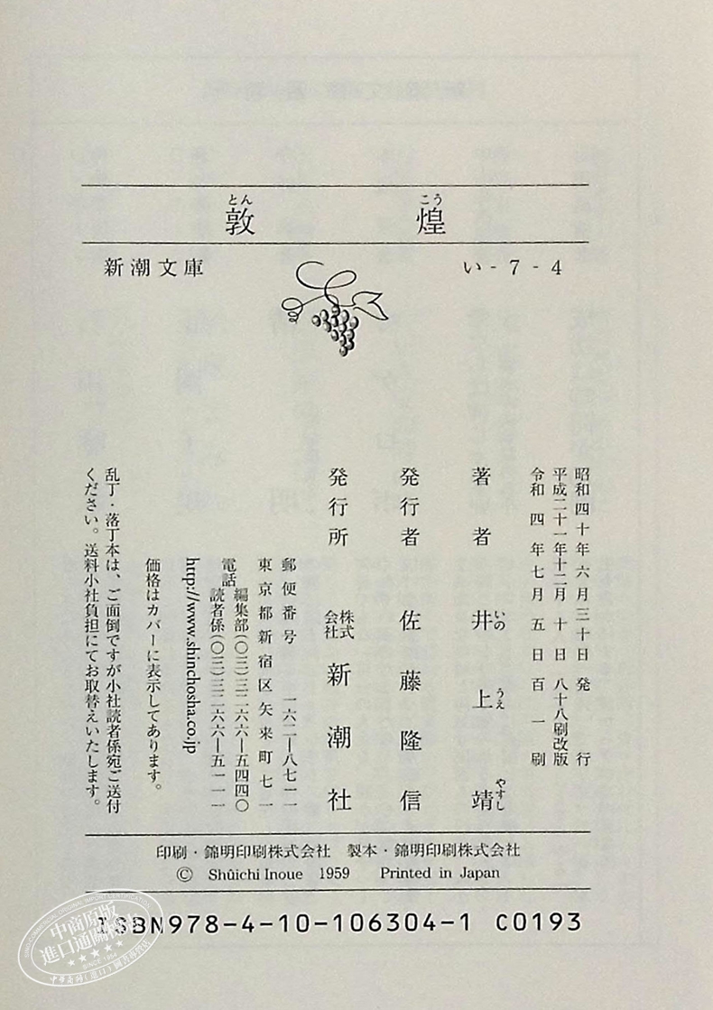 【中商原版】敦煌 井上靖 日文原版 敦煌 新潮文庫