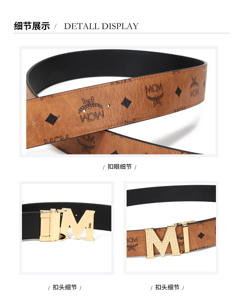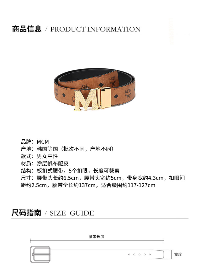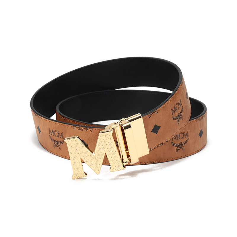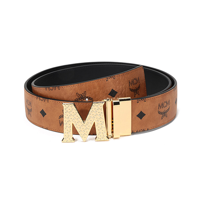 【国内现货】MCM/MCM 2021款 男女中性涂层帆布配皮板扣式双面皮带腰带 MXBBSVI01