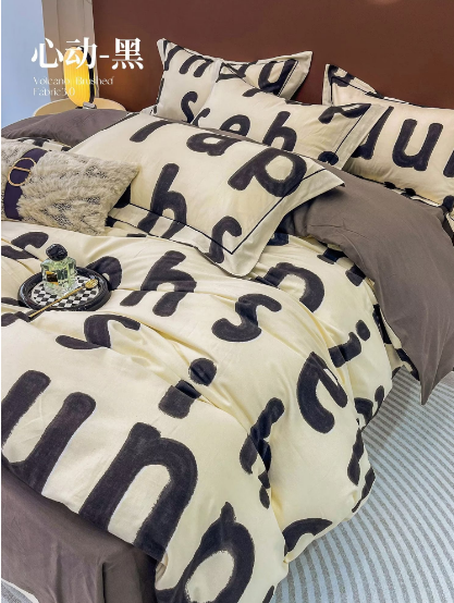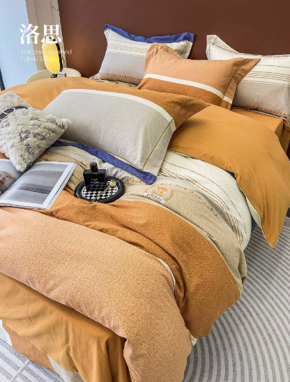 精选高克重纯色牛奶绒宽边四件套G110200001