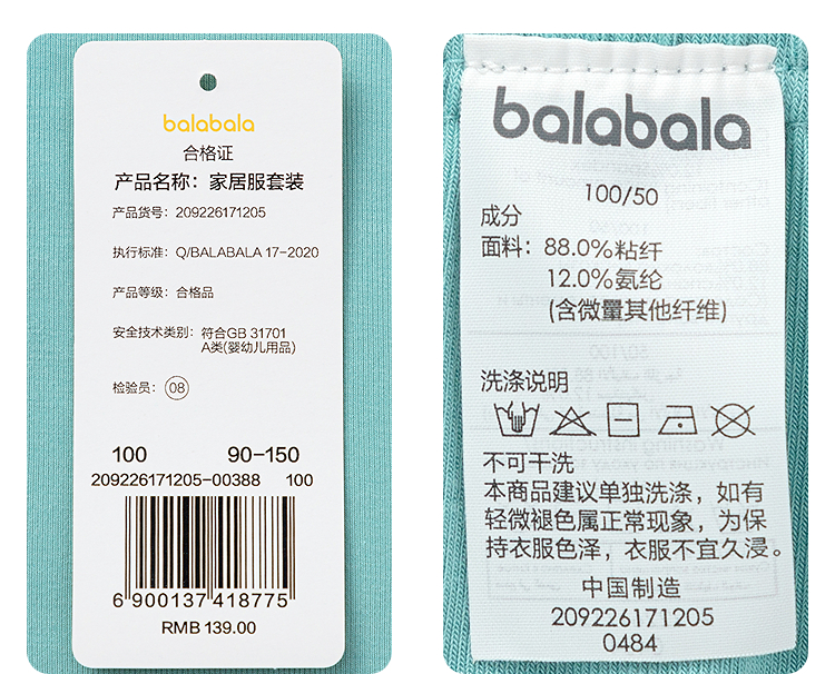 巴拉巴拉宝宝睡衣套装夏季空调服男童女童家居服优可丝亲肤随心裁
