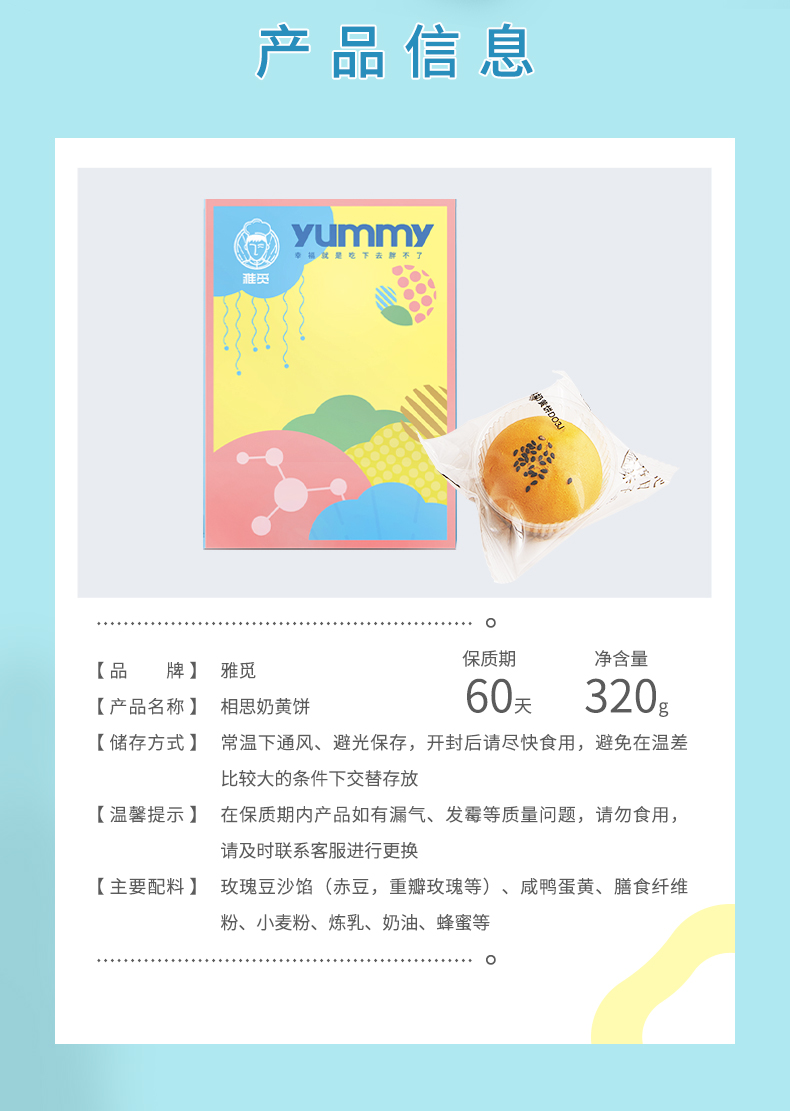 雅觅 相思奶黄饼320g 6枚休闲食品夹心办公室糕点下午茶 传统点心