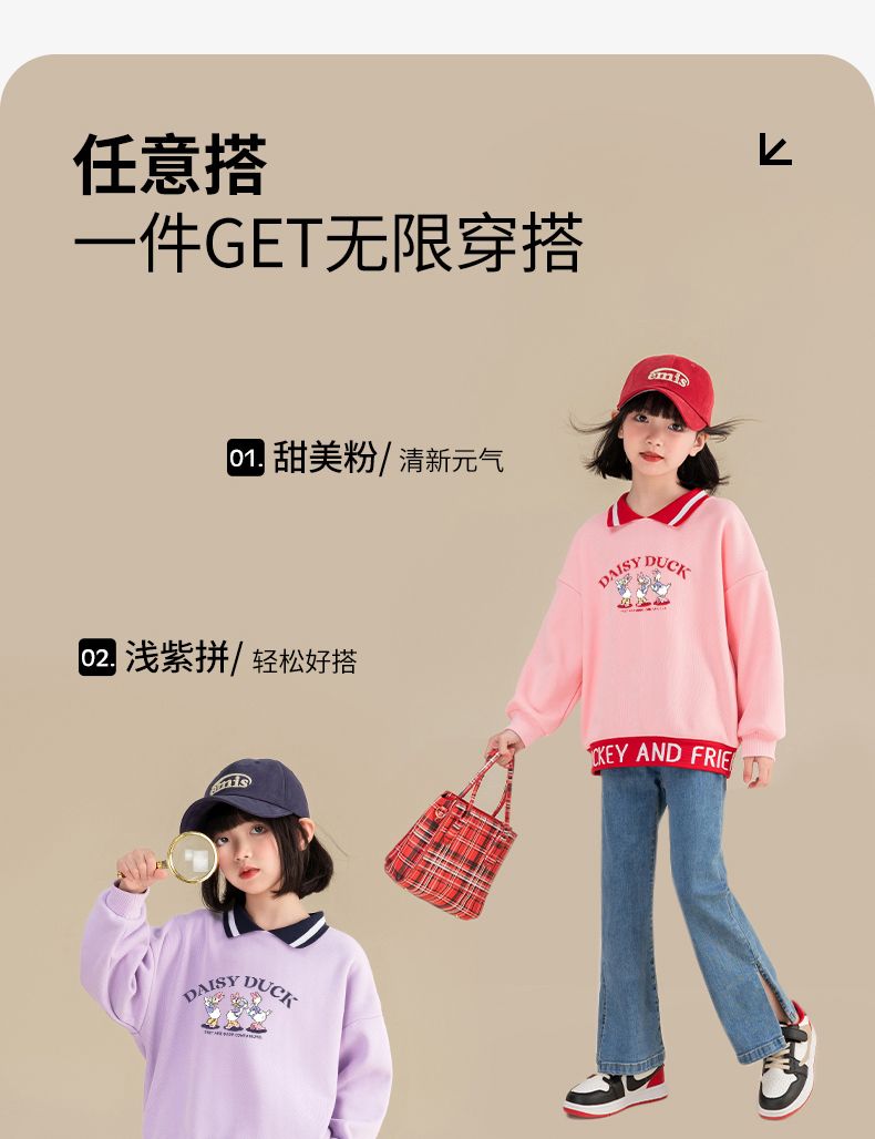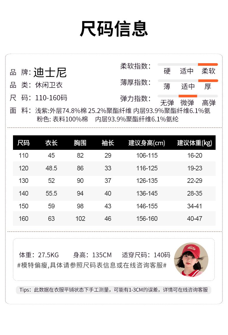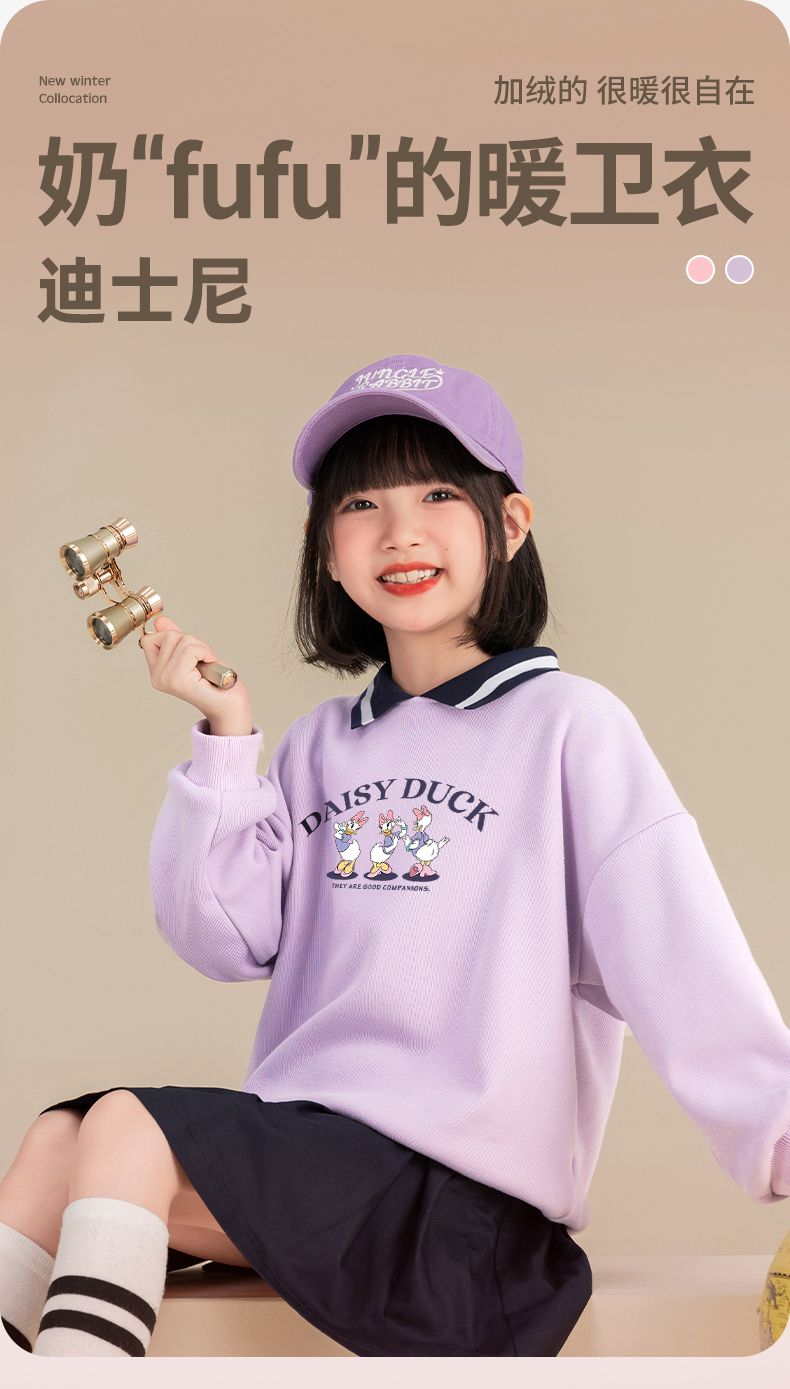 迪士尼女童卫衣冬季加绒厚款儿童冬装女孩上衣中大童衣服潮酷保暖