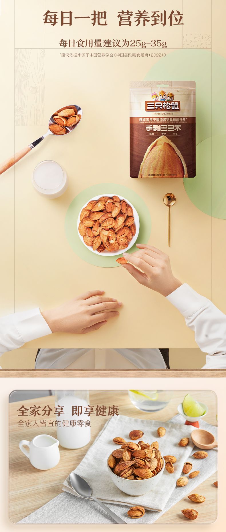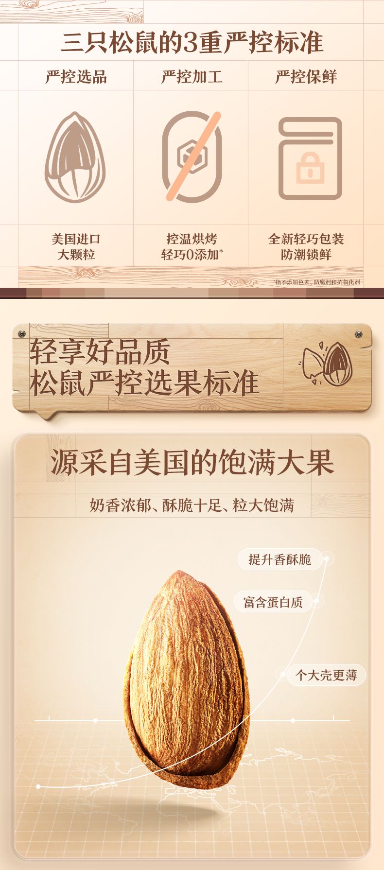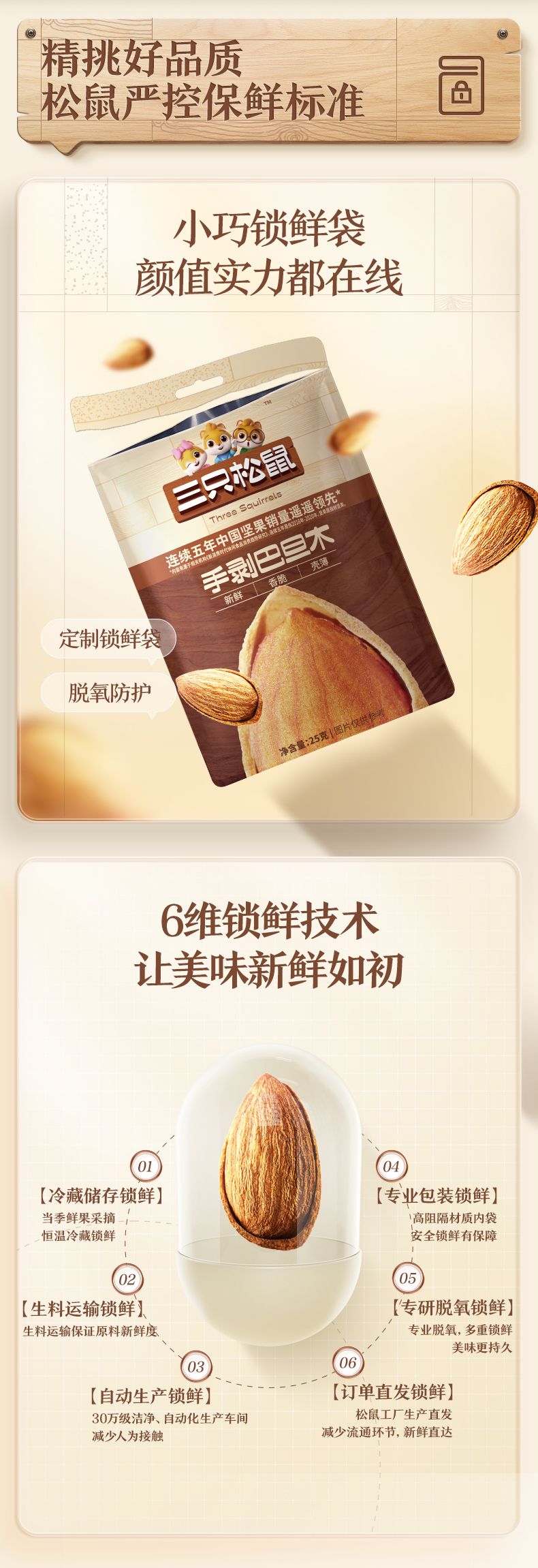 【三只松鼠】手剥巴旦木25g*10袋-zl