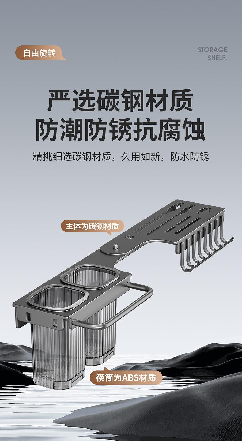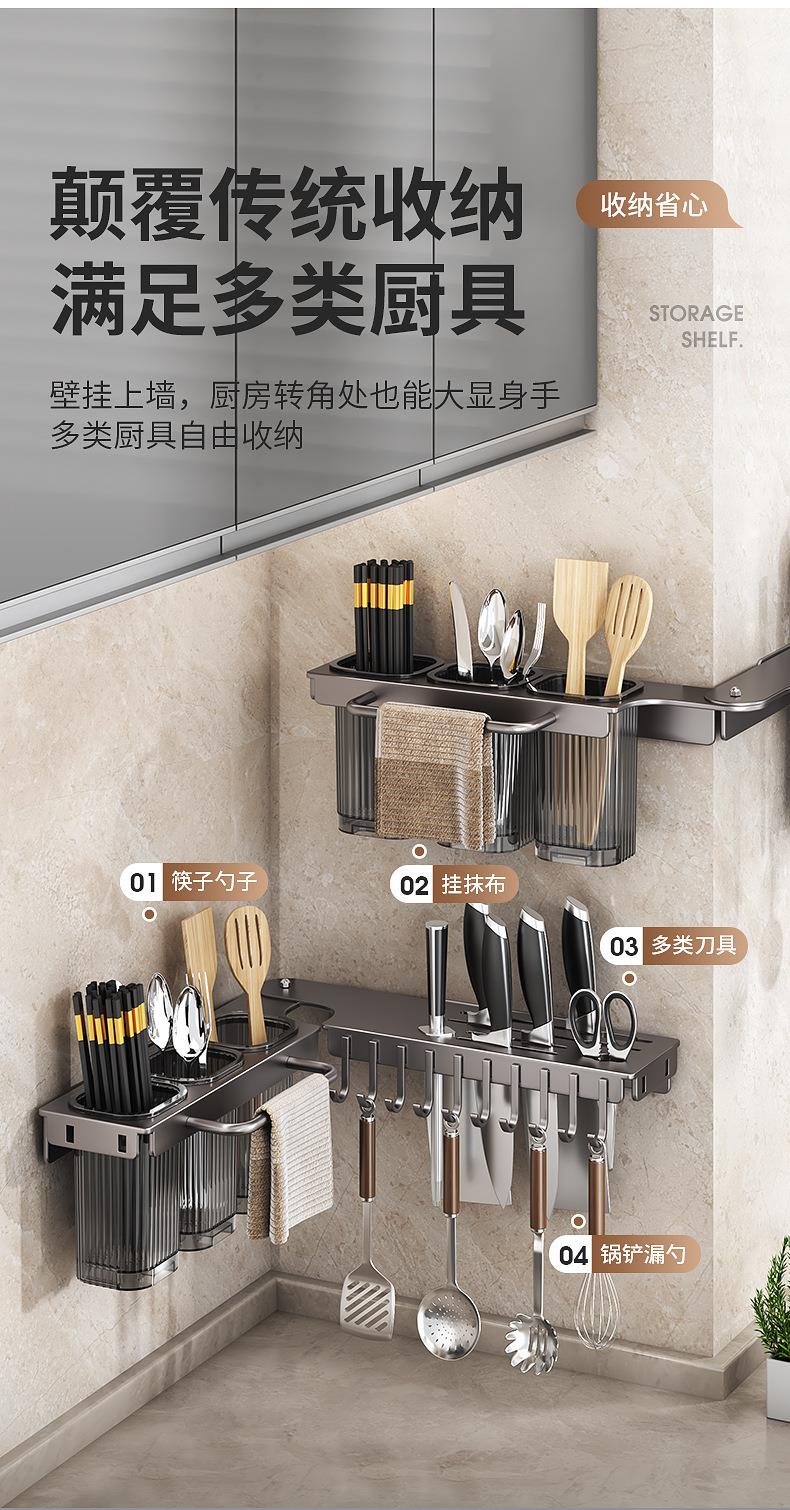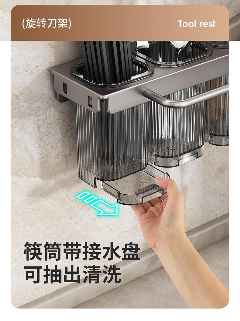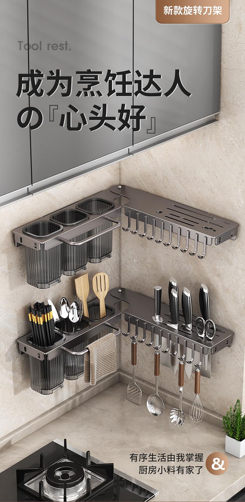 转角刀架折叠置物架厨房家用壁挂式多功能刀架筷子筒刀具一体收纳